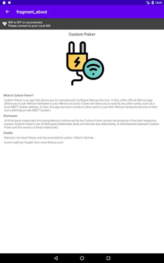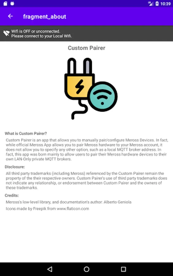 The main objective of this App is to enable users to pair their Meross hardware devices to their own LAN-Only private MQTT brokers. More specifically, the current version of this app is capable of integrating with the Alberto Geniola's Meross-Local-Addon (https://github.com/albertogeniola/meross-homeassistant/tree/local-addon). Expert users who know how to deal with Meross protocol and want to setup their own MQTT broker, can also rely on this app to perform pairing by specifying the custom UserId and Key values.