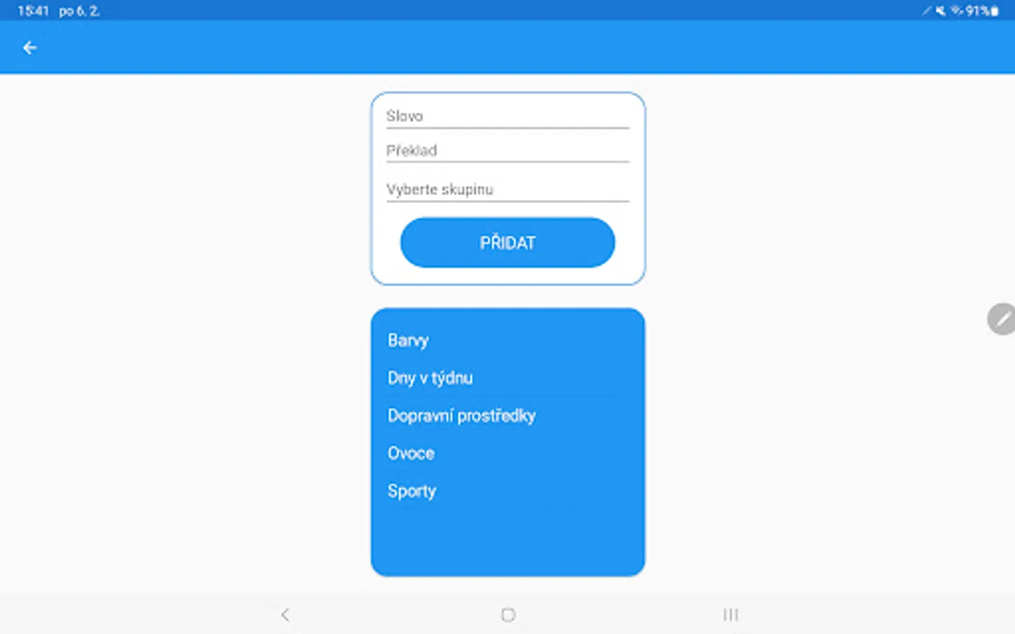 Do you like foreign languages or are you currently learning one? Do you need to learn new vocabulary but can't do it on paper? Try our Vocabulary app that makes learning translations easier! You enter your own translations into the application, which you divide into your own groups and then practice them. There are several practice modes to choose from, each offering a different learning style. Of course, the application also has the option of registering and then synchronizing data between all your devices. You can also easily share any group of translations with your friends. If you do not want to write and insert translations on a mobile device/tablet, you can also create a group on the website and then just insert a 6-digit code into the application or read the QR code generated on the website by the application.