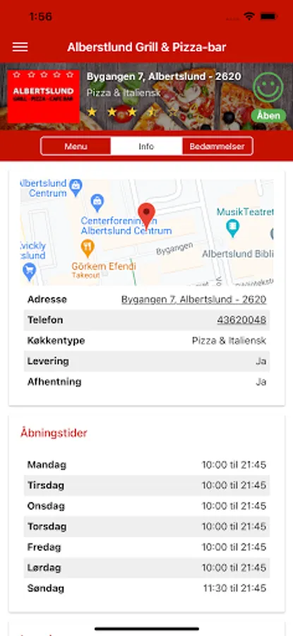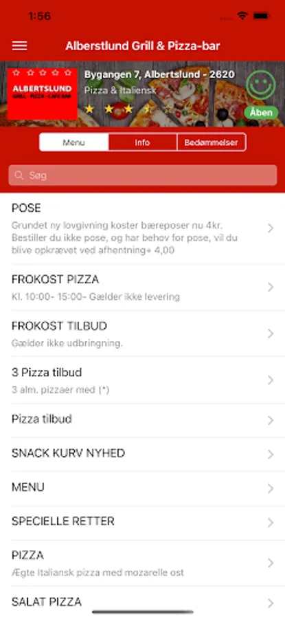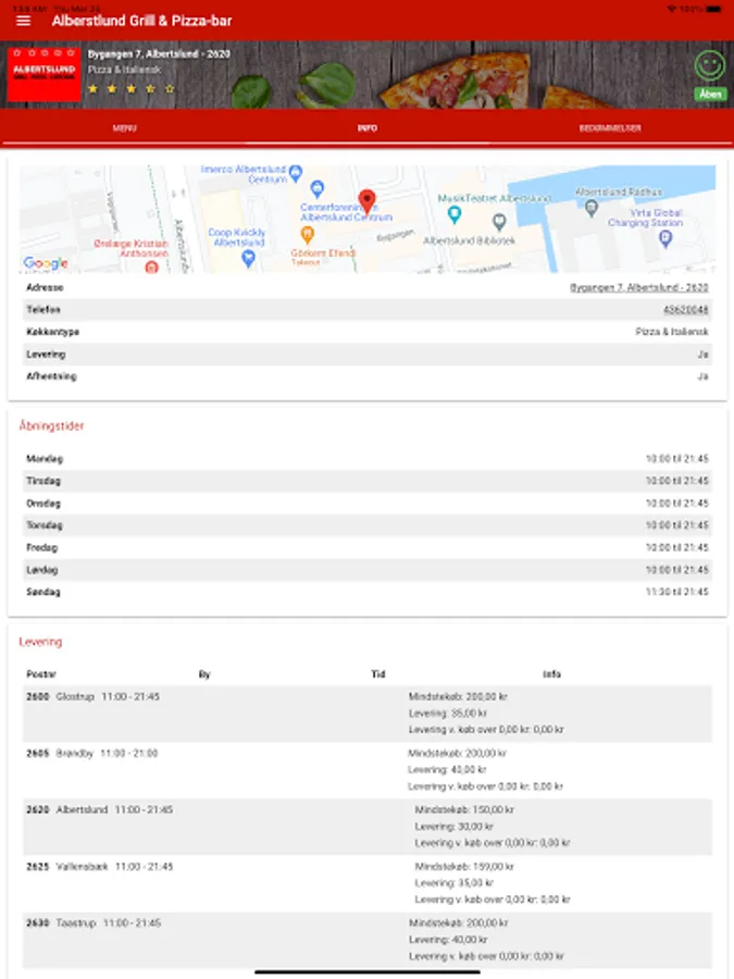 Med Alberstlund Grill and Pizza-bar app på telefonen, har du madbestilling lige ved hånden.