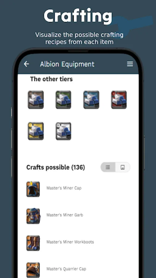 - 📖 Encyclopedia: Search, list, and filter all the game's items, including equipment, mounts, and food. Find all the necessary information, such as weight, average prices in markets across all cities, spells, and even the required resources for crafting.