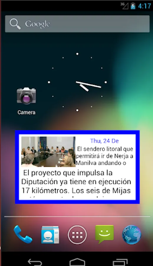 This Widget shows you on the screen of your phone or tablet holder and photo of the latest news published by the SUR Journal of Málaga.