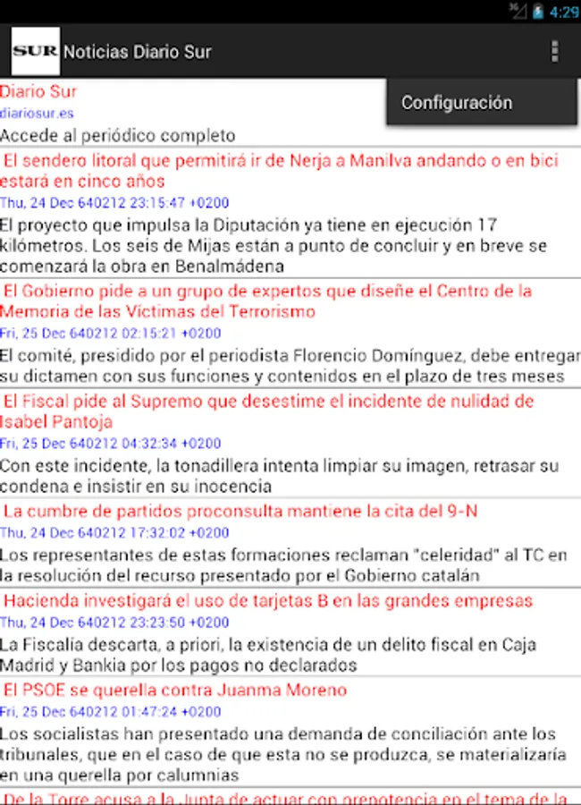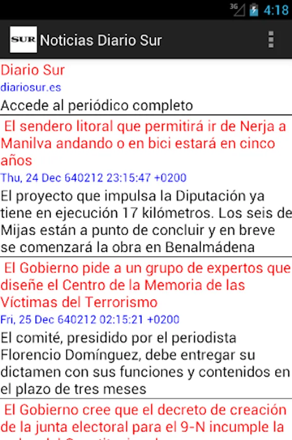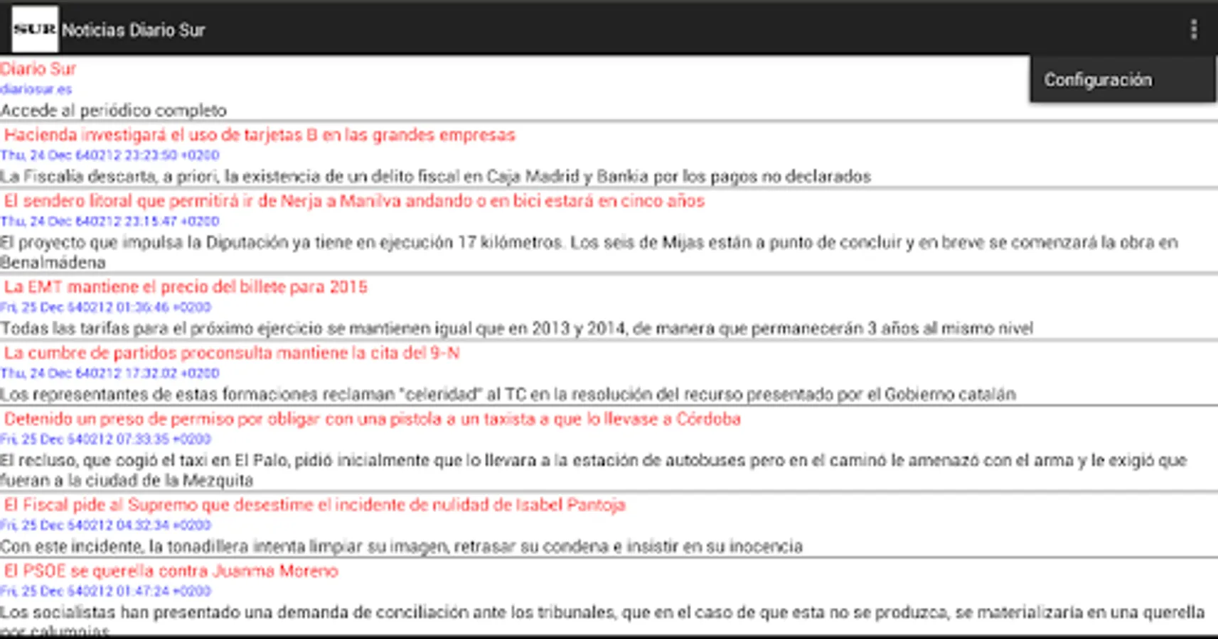 Use the RSS service SUR Journal of Málaga to get the information, so that Internet traffic is minimal.