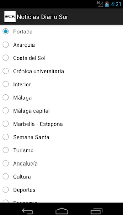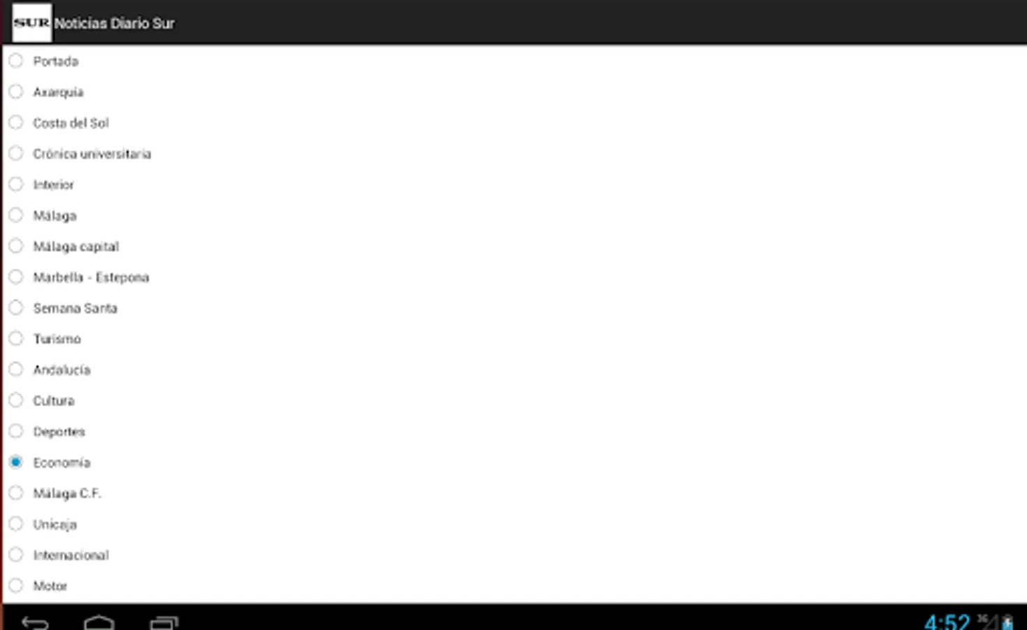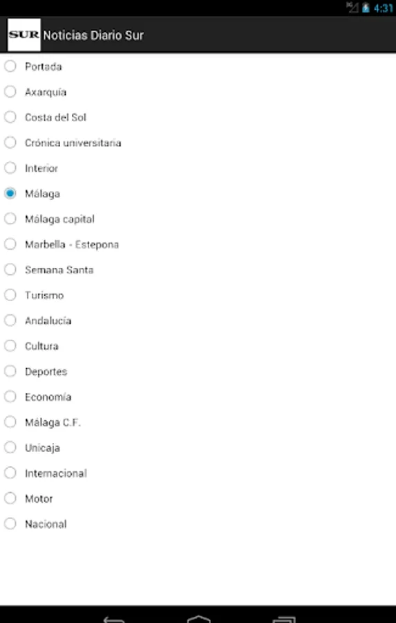 Configures want to see what news (Home, Axarquia, Costa del Sol, University Chronicle, Interior, Málaga, Estepona Mabella, Easter, tourism, Andalusia, Culture, Sports, Malága CF, Unicaja ...)