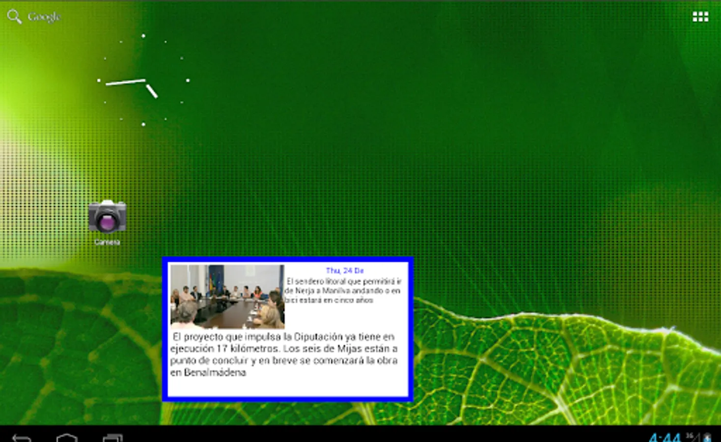 After installing the app on your tablet or phone, you can select the Widgets section in your Android looking "News Journal SUR" and place it on the side of the screen you want. You can even change the size at which the news are displayed