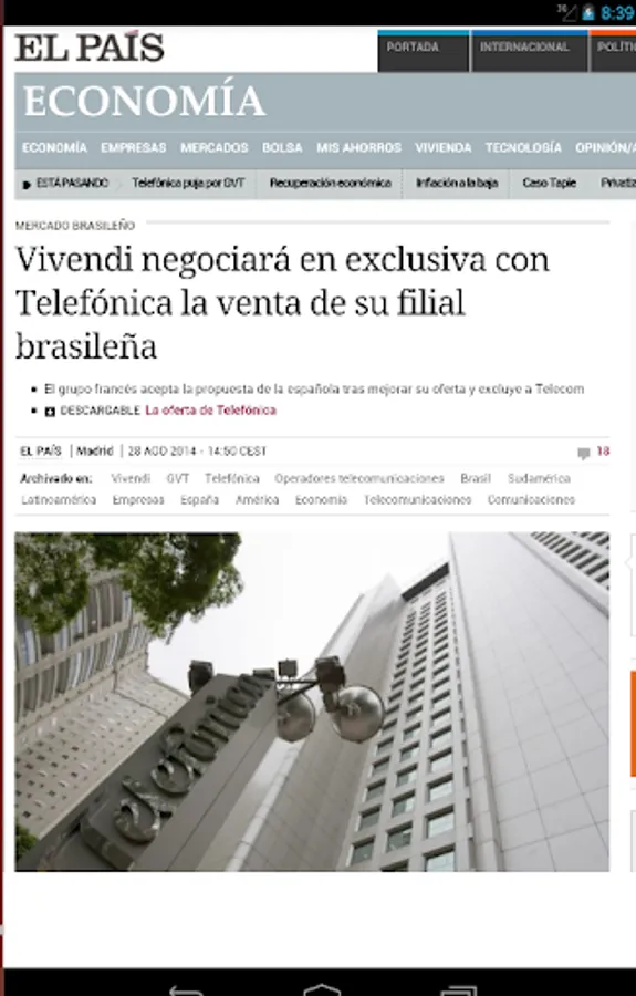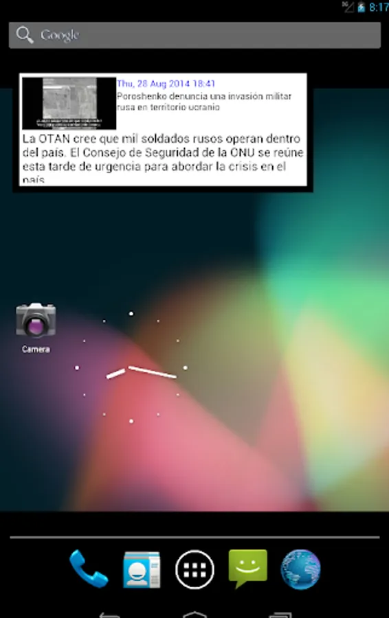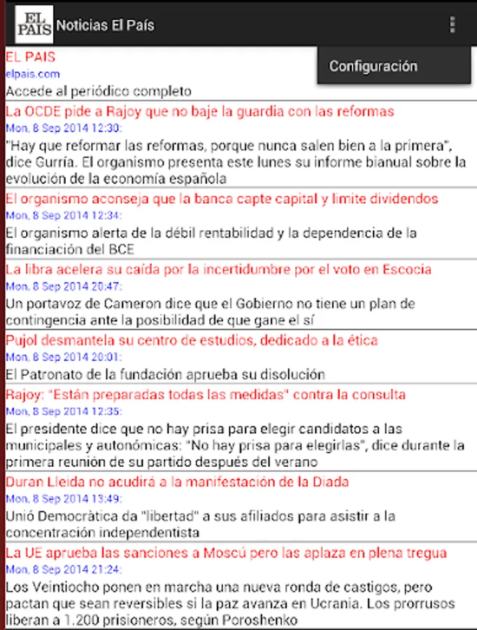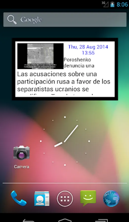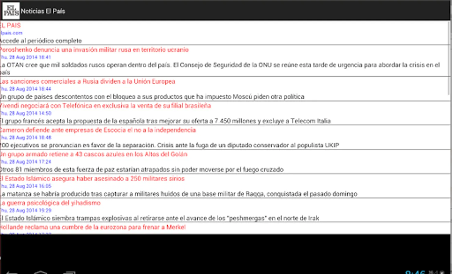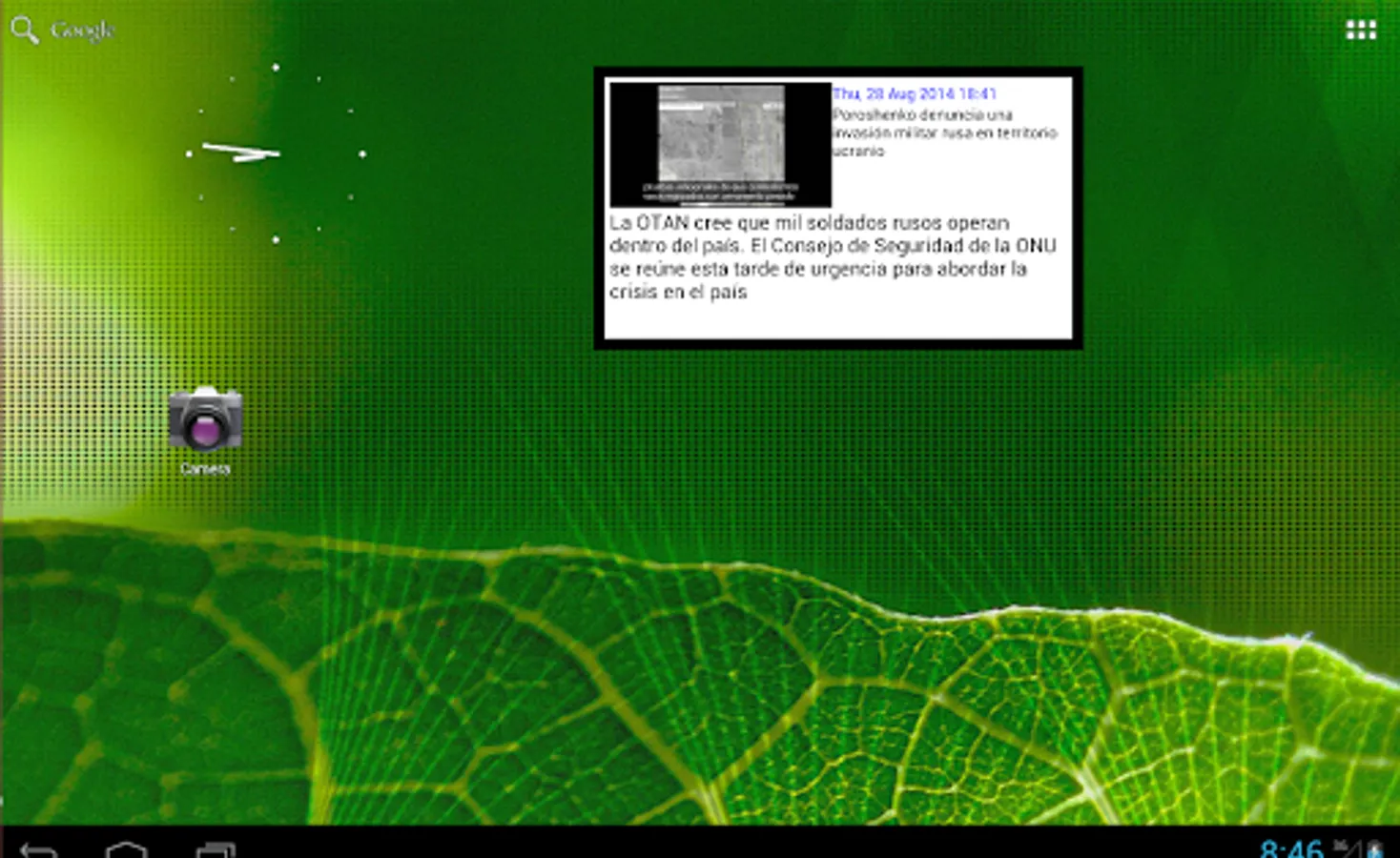 This Widget shows you on the screen of your phone or tablet holder and photo of the latest news published by the newspaper El Pais