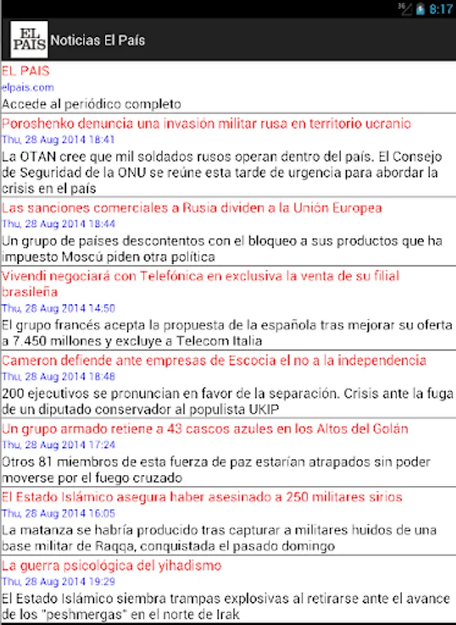You can select the one you want to see the full story, or see the newspaper EL PAIS full as desired.