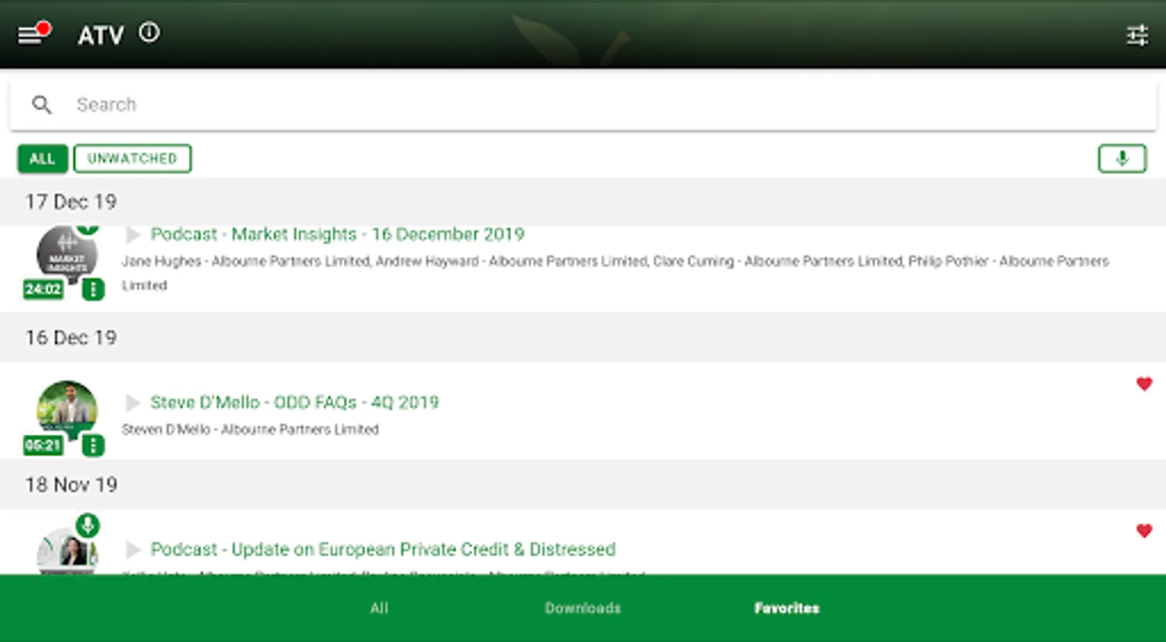 The Albourne App is an internally-developed mobile app, created for Albourne Partners’ clients to stay up to date with Albourne’s insightful research. It features alternative investment news, and content from ATV (Albourne’s in-house film production team), as well as useful updates on client-specific portfolio information.