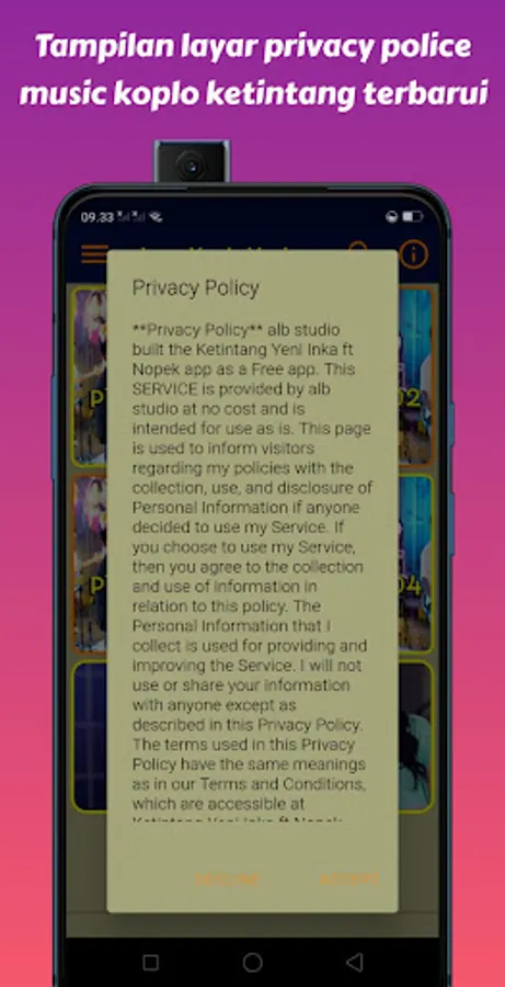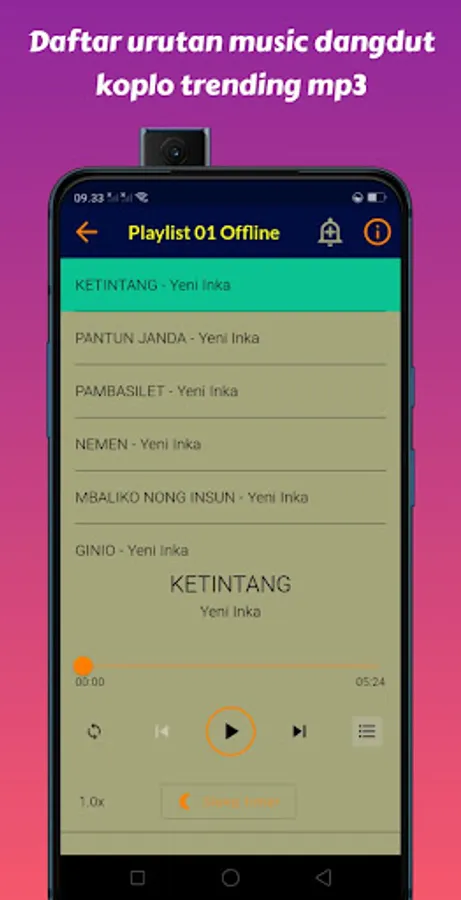 The Dangdut koplo nemen cover song application full mp3 offline is a viral Dangdut kendang koplo raiso dadi siji yeni inka music application which contains the coolest collection of dangdut music and full mp3 dangdut kendang koplo songs which have many advantages and features of the offline music player application.