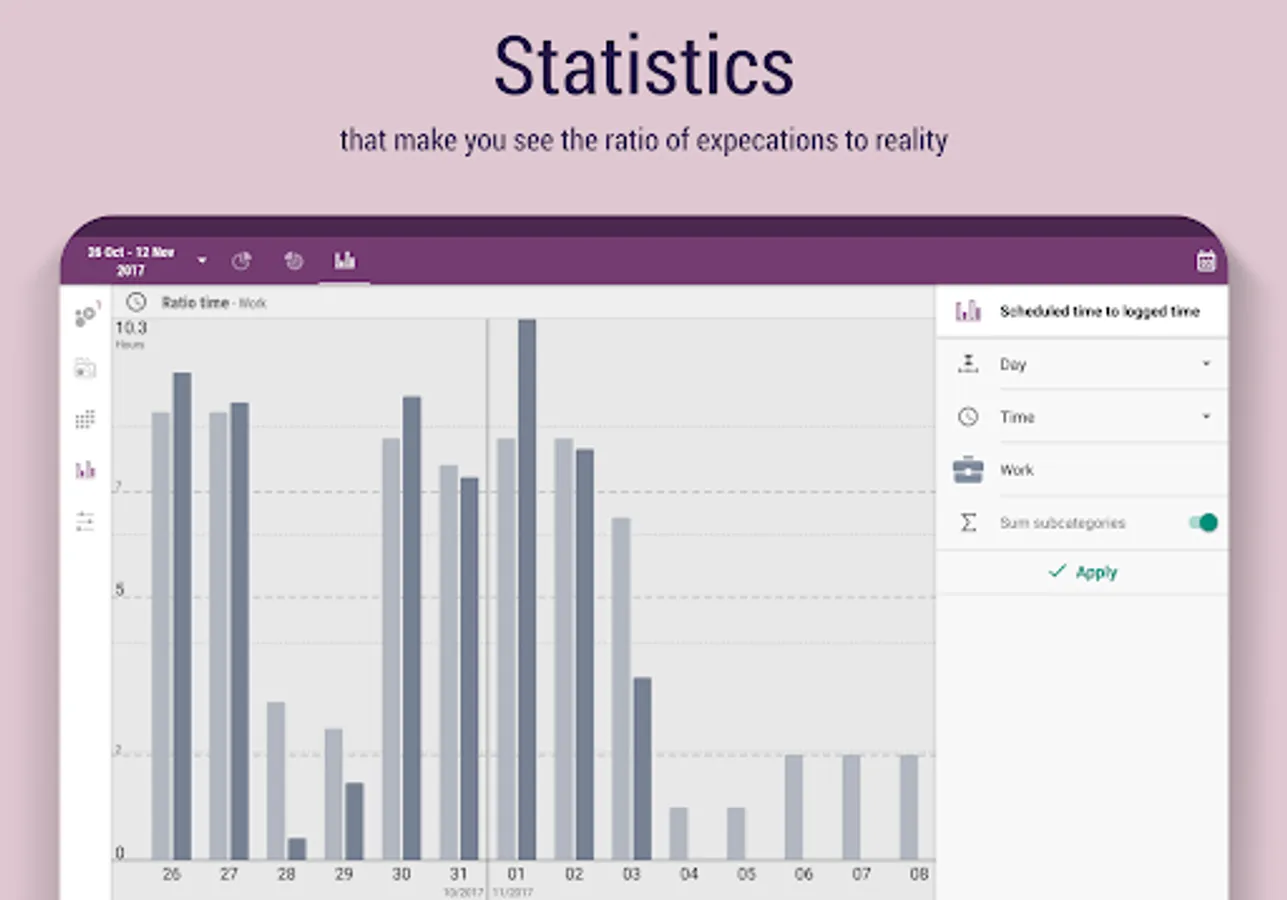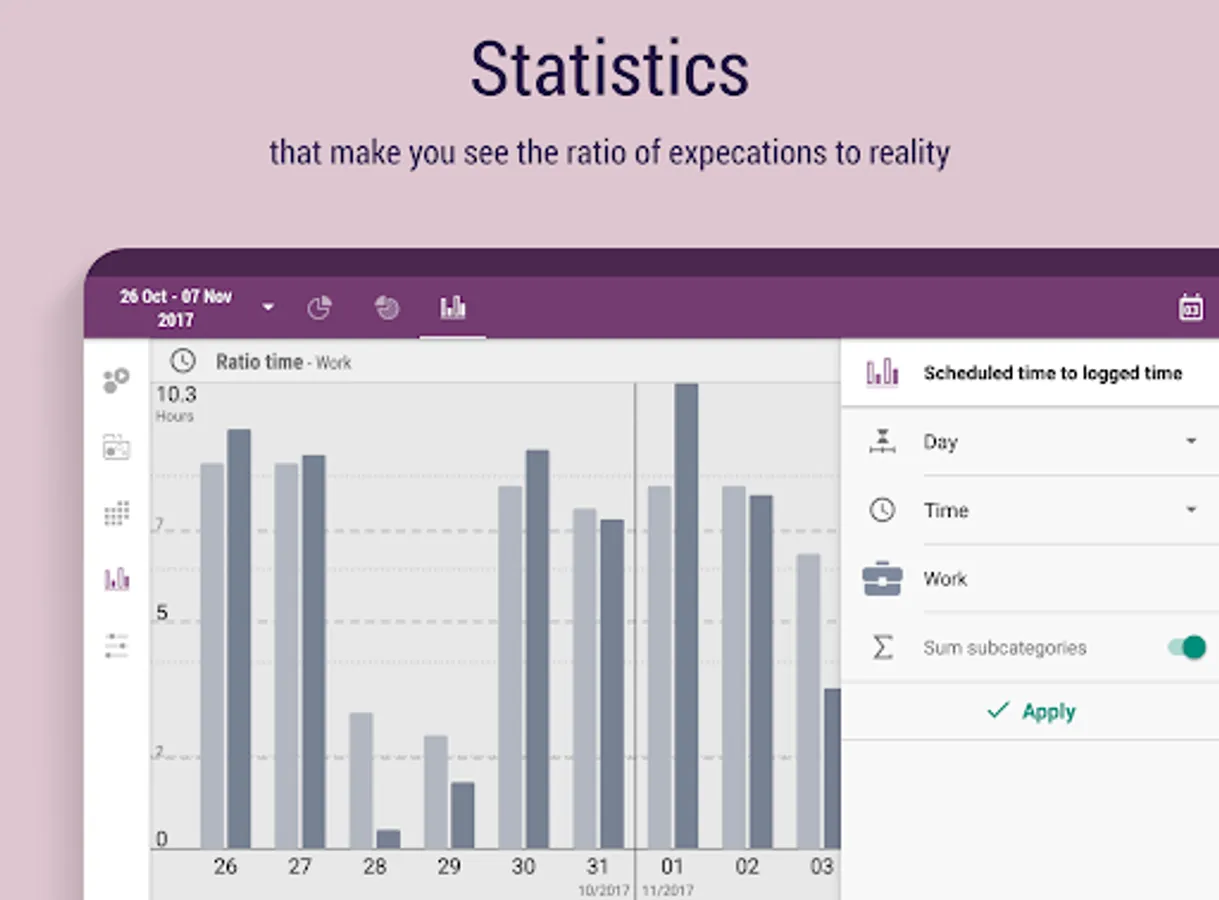 ▸ Unlimited and detailed statistics of your expectations and the reality