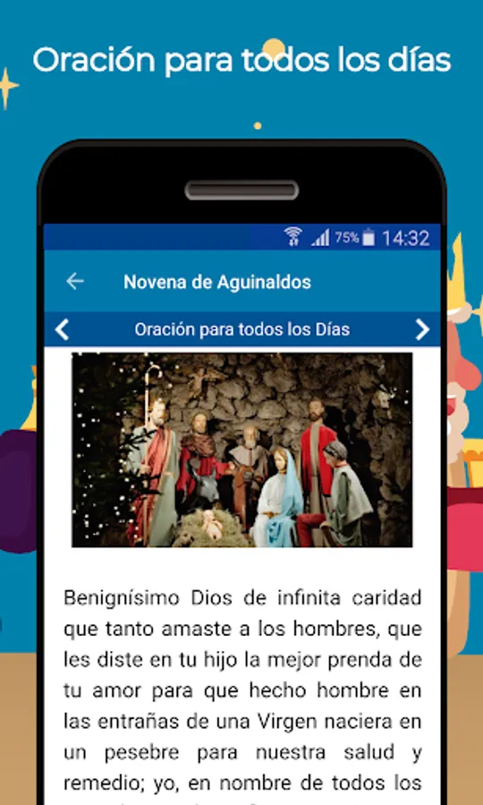 Ninth designed to be easy to read and navigate. The menus and options allow you to read it and follow it without mistakes because the application guides you to end each day with carols.