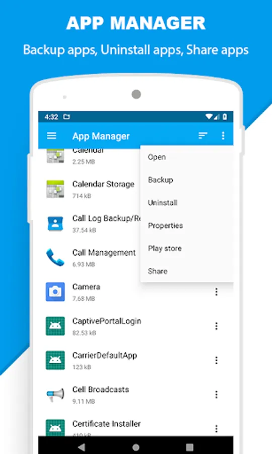 - App Manager to open, backup, or directly uninstall any app