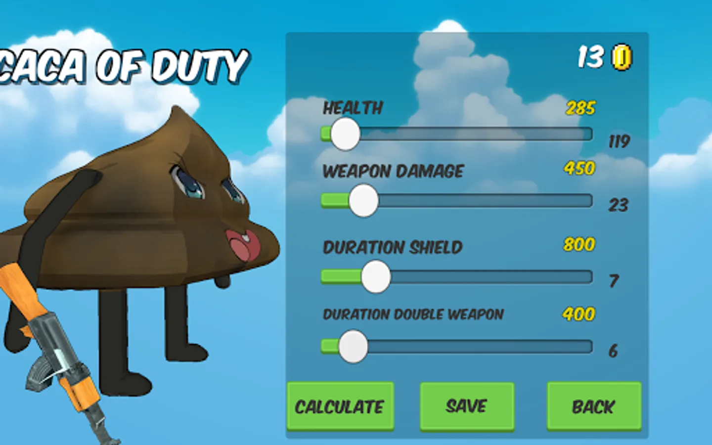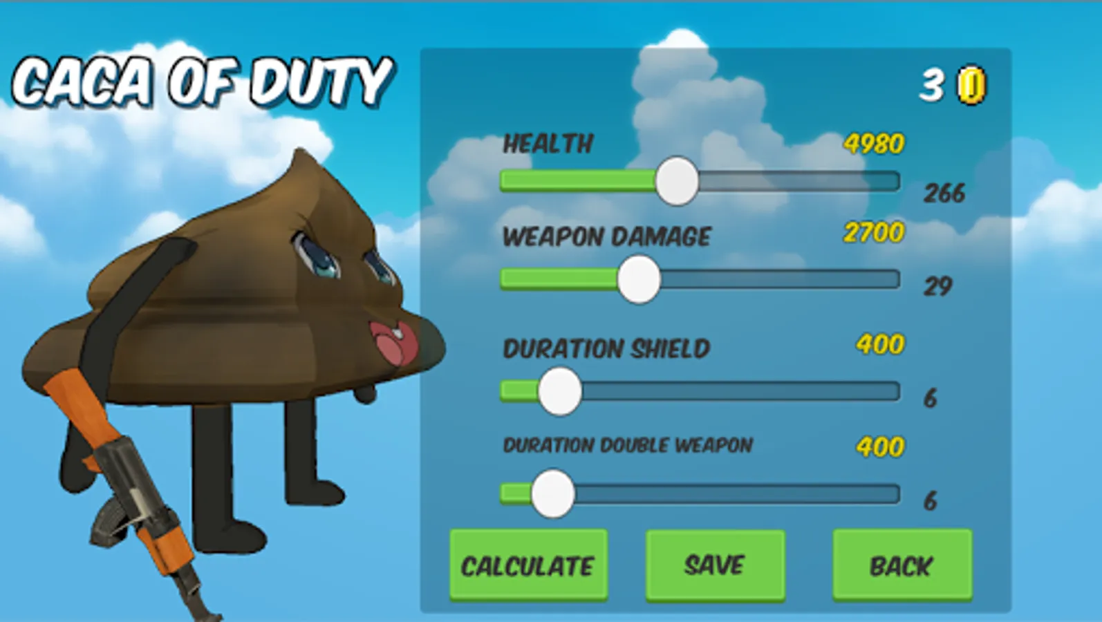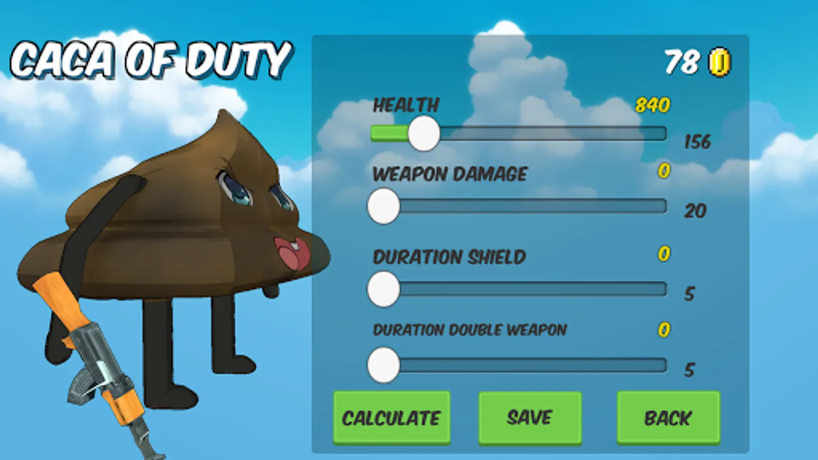 Caca of duty is an action game where you must survive the fearsome hordes of enemies invading the beach and the town! Try to eliminate as many enemies as you can and save humanity! (?)