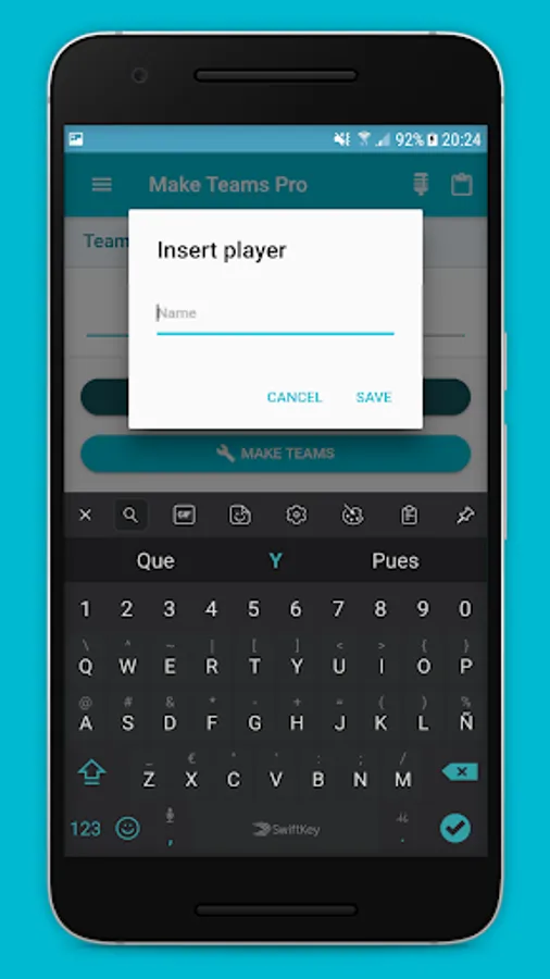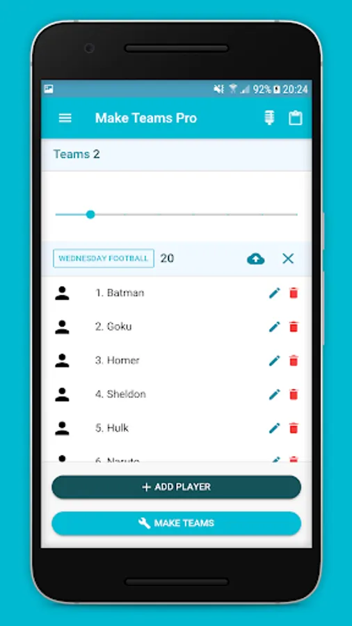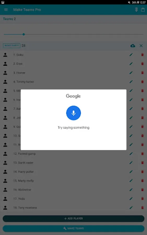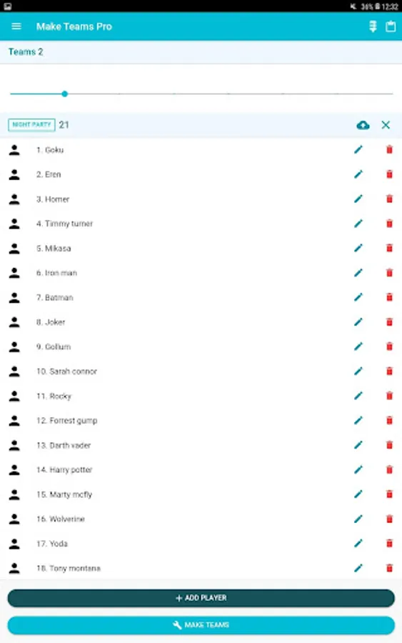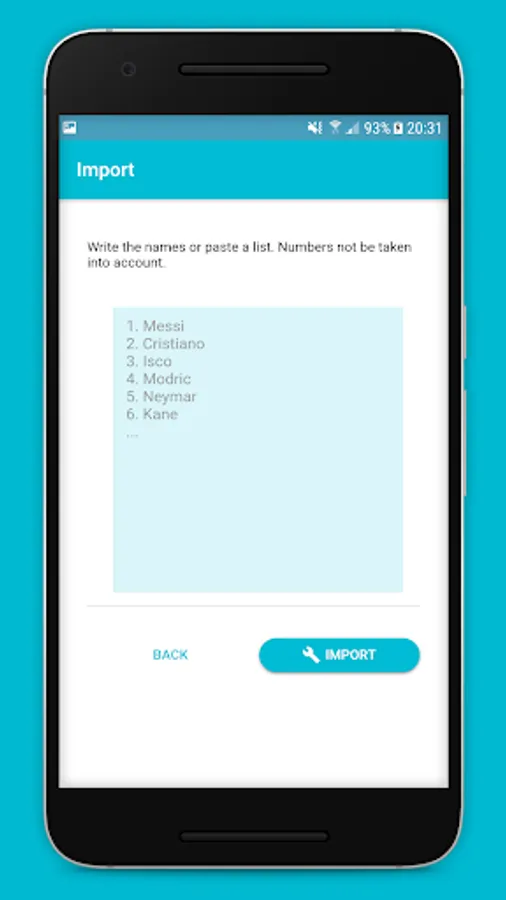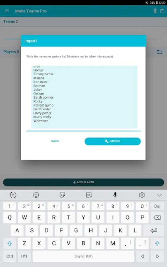 2. Enter the name of the players (by typing them, by voice or by importing a list)