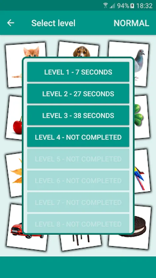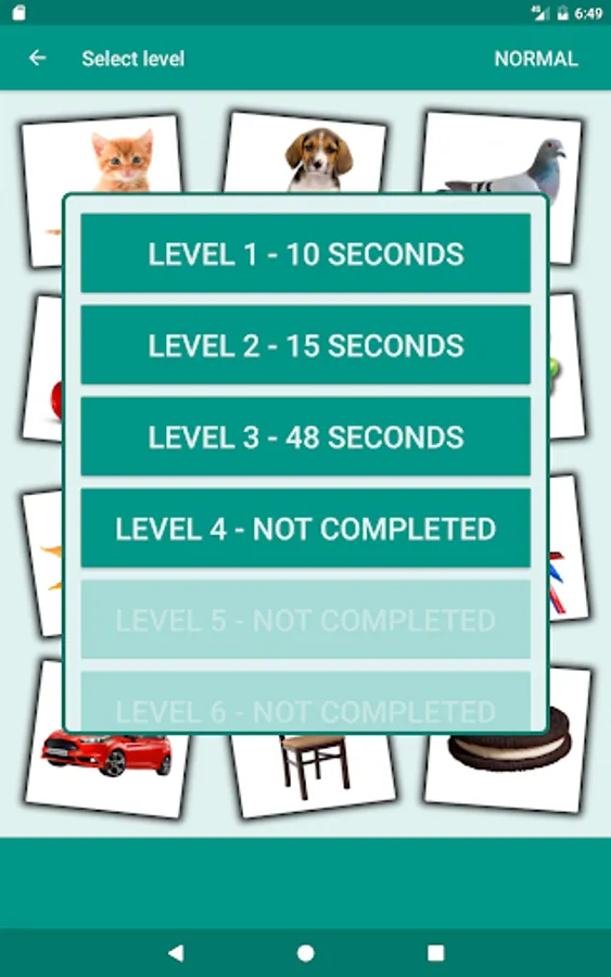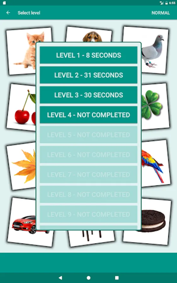 NEW: now you have 6 game modes (match 2, match 3, mirror, mirror 3, match 4 and mirror 4) each one with 10 levels making a total of 60 !!!
