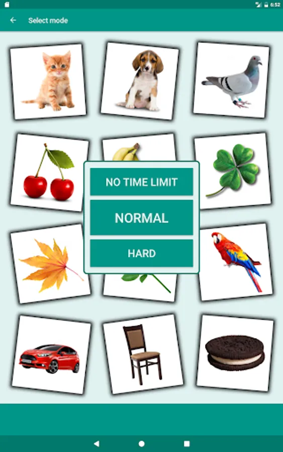 There are 3 time modes (No time limit, normal and hard) and 10 levels to which more difficult.