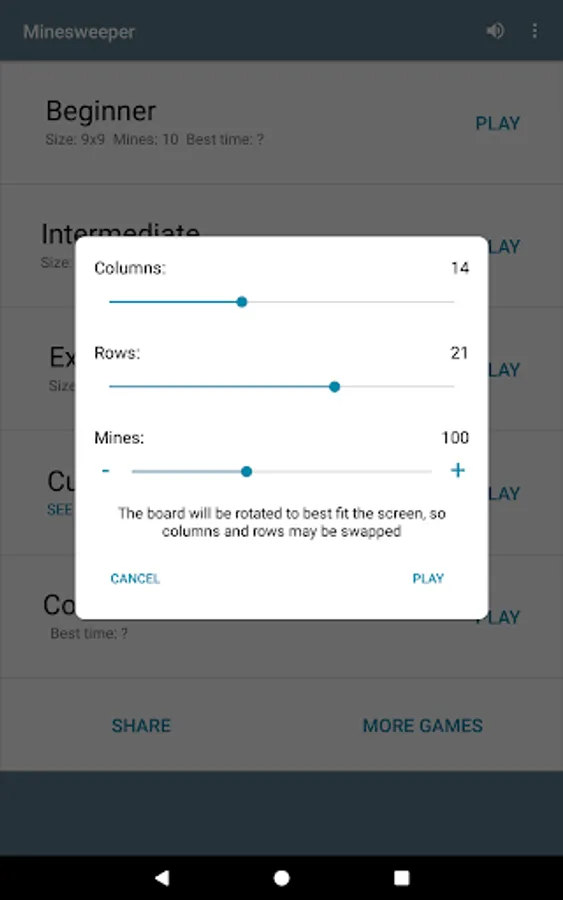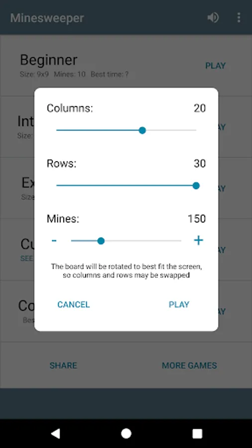 - The possibilty of generating boards that can be solved only by logic and don't need to have to guess.