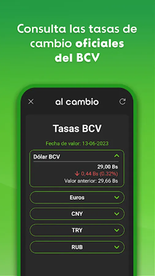 More than 2 million Venezuelans use Al cambio, don't wait and download the app.