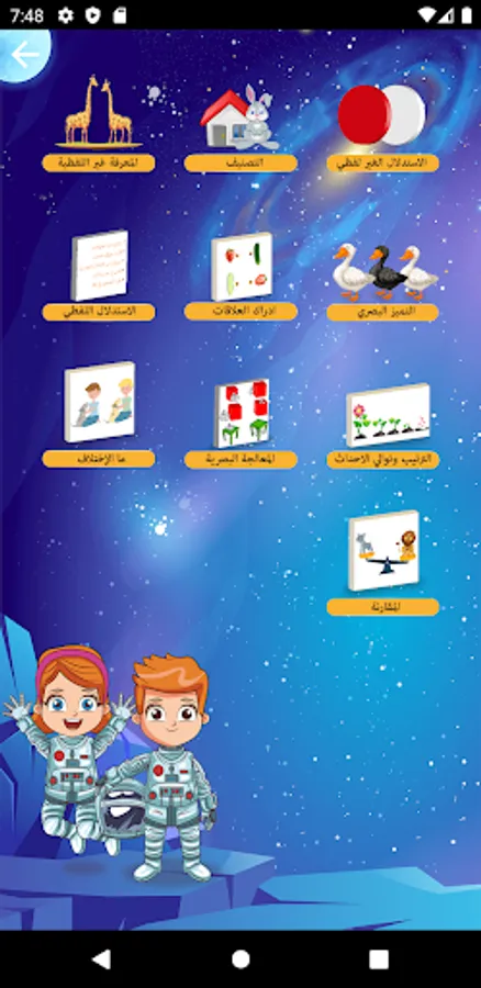 تطبيق مهارات ينمي المهارات الذهنية ومهارات التفكير والمهارات المعرفية كمهاره التصنيف والاستدلال بشقيه اللفظي و غير اللفظي ومهاره المقارنة والترتيب والتمييز والتتابع البصري وادراك العلاقات ومطابقة الشكل بظله ومهاره المعرفه بشقيها اللفظي و غير اللفظي والمعالجة البصرية المكانية ويشتمل على