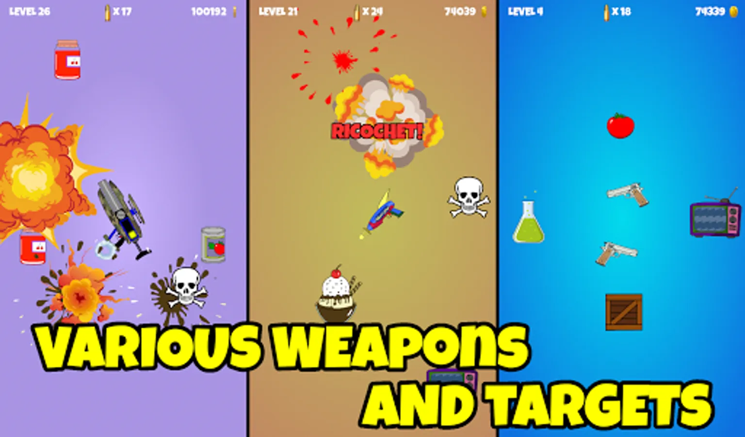 Become the master of ricochet and recoil and shoot at the right time to take out multiple targets.