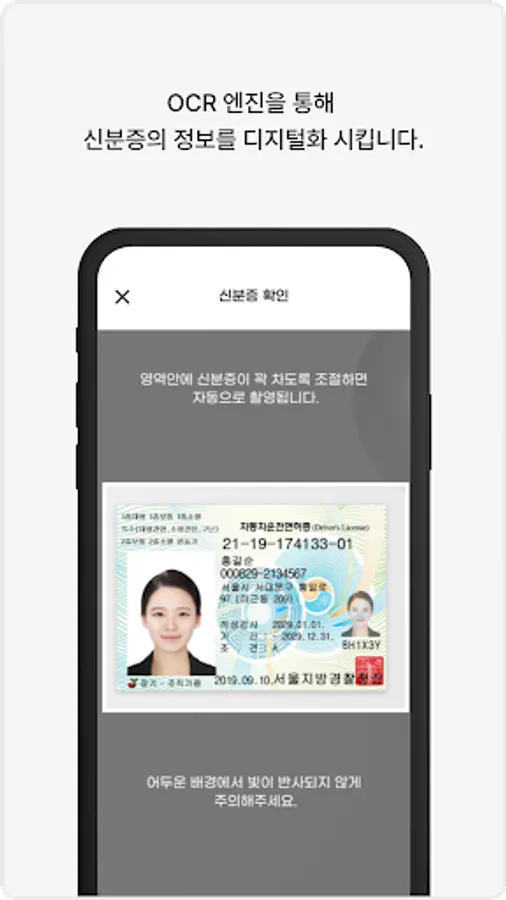 ID information verification - OCR engine digitizes the characters printed on the ID.