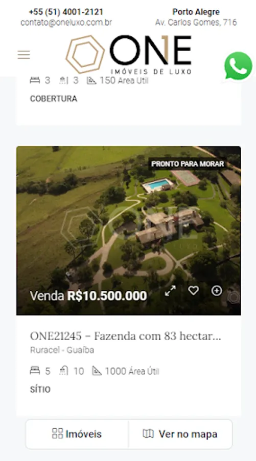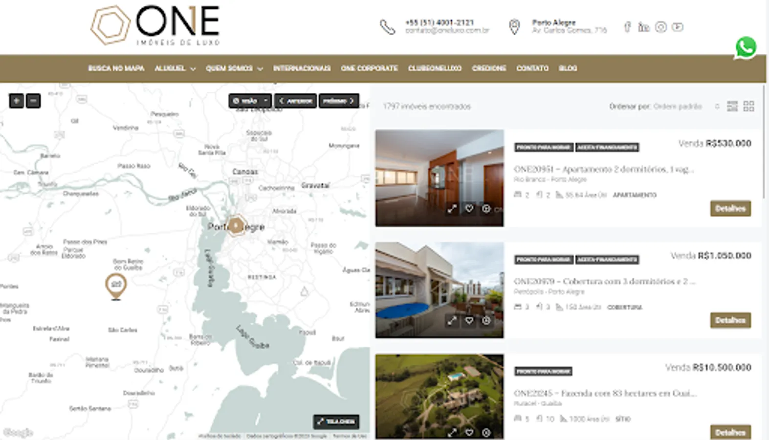 One Imóveis de Luxo is recognized as the only real estate company specialized in the sale of high-end properties in Porto Alegre. Having pioneering spirit and excellence as the pillars that support its operations, One Imóveis de Luxo imposed on the market standards never before practiced in management and customer service in the real estate market, providing new experiences and customized solutions for the most demanding customers in the market.