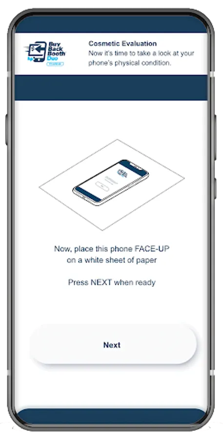You will also need to use a second smartphone (with a functional camera) to assist in performing the evaluation. As part of the testing process, you will be provided with a QR code which you will need to scan with your secondary phone. This will allow you to launch an inspection module and take a series of photos that will evaluate your trade-in phone’s condition.