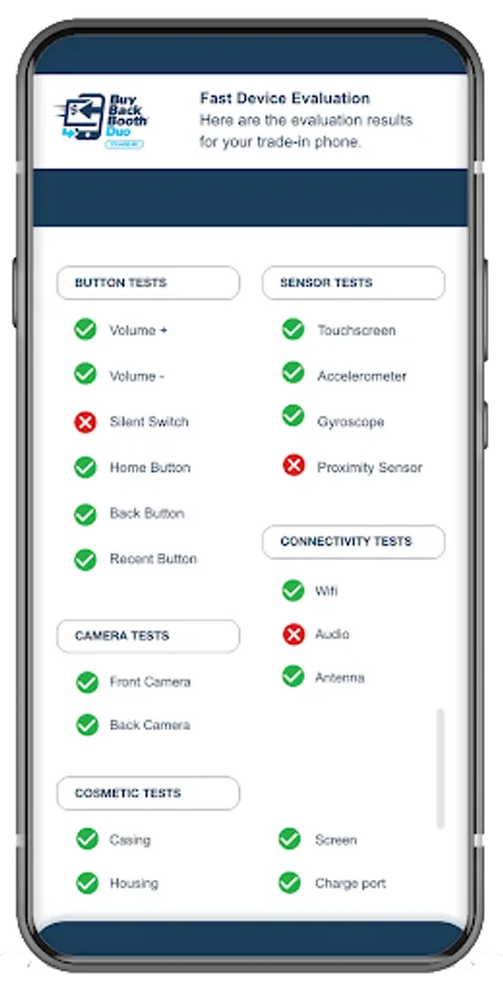 BuyBack Booth's DUO Trade-in App is a great way to evaluate your smartphone's condition, useful if you plan on trading it in or reselling it, or simply to check how your phone is doing.