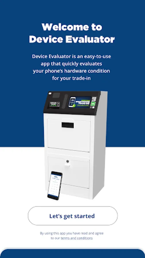 The Device Evaluator application is used exclusively with our automated diagnostic kiosk for smartphone trade-in assessments. Only the information required for proper evaluation is gathered and analyzed during use of this app. Generally, this information includes the model number, version number, memory capacity, and if a hardware malfunction has occurred. Once the functional evaluation on the Device Evaluator app is complete, you'll be prompted to use our kiosk which will assess your phone's physical condition. Both functional and physical results are assessed to provide an optimal trade-in value for your smartphone.