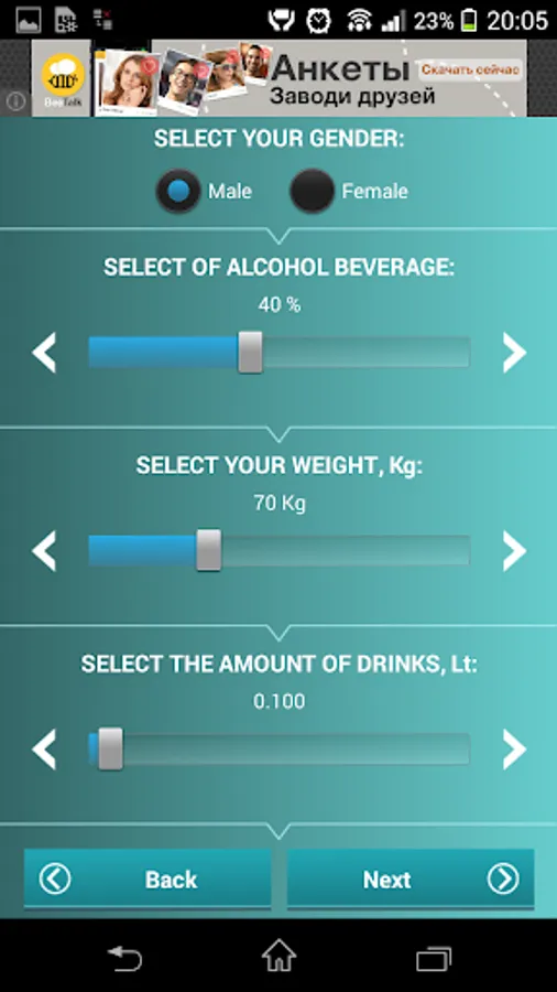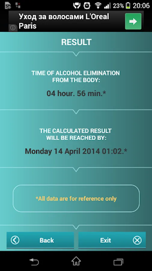 The application allows you to easily calculate the time of alcohol elimination from the body or the amount allowable to the use of alcohol, using the minimum data set.