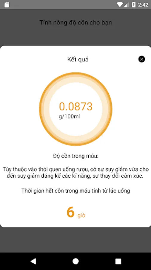 Application to calculate the concentration of alcohol in the blood after drinking alcohol or beer.