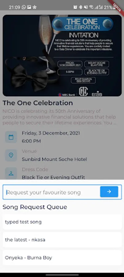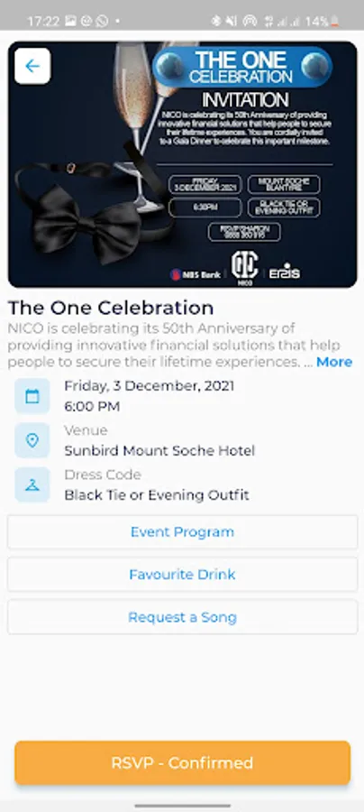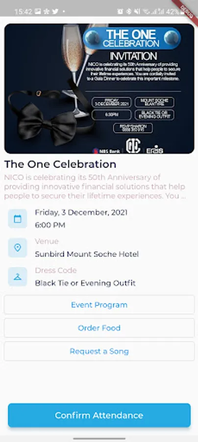 Attending a NICO Group Malawi event? Confirm your attendance, request music and order drinks and food to your table using the NICO events app.