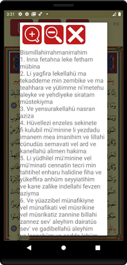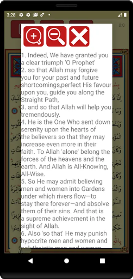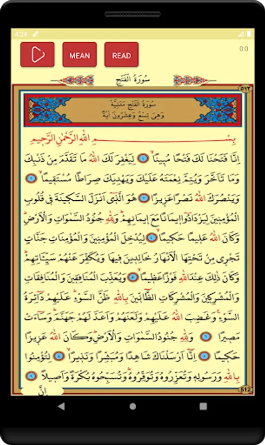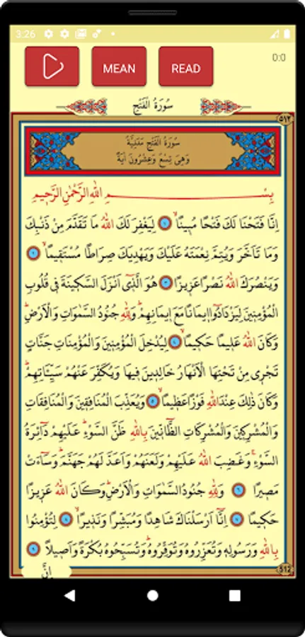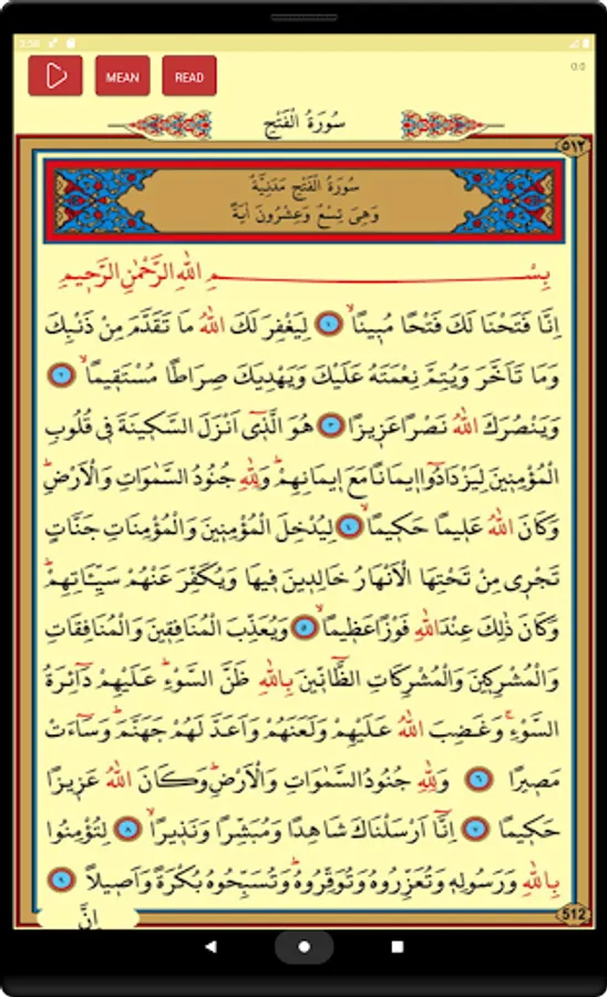 🔸 You can listen to the Surah Fath, read its translation, and it's Arabic.