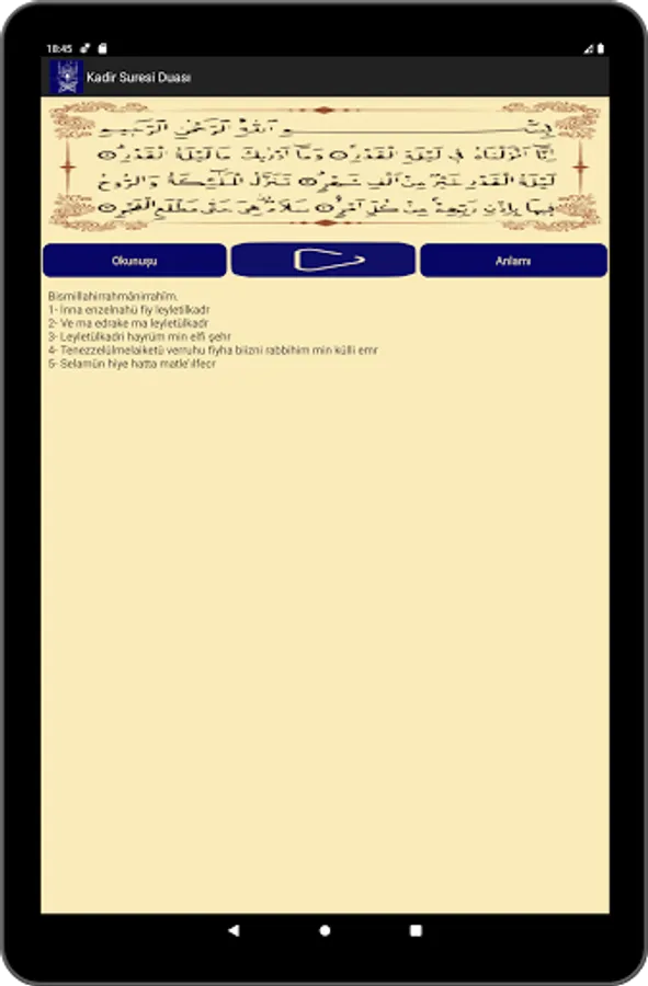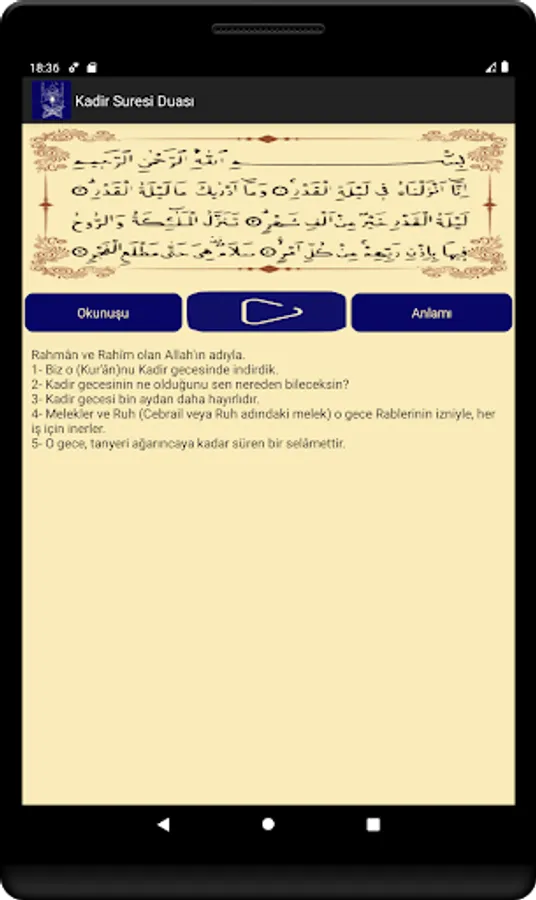 🔸 In Surat al-Qadr and Duasi application, you can find information about the night of Qadir, the night of Qadir, its virtues and the prayers you can do on the blessed Night of Power.