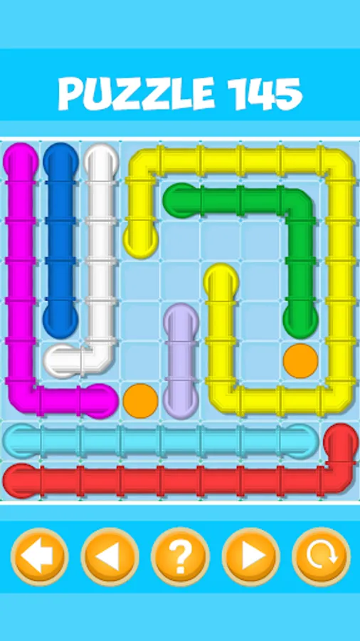 Connect dots with matching colors to create a pipe connection. Pair all dots with the same color and cover the entire board with pipes to solve each puzzle. But watch out, pipes will break if they cross or overlap!
