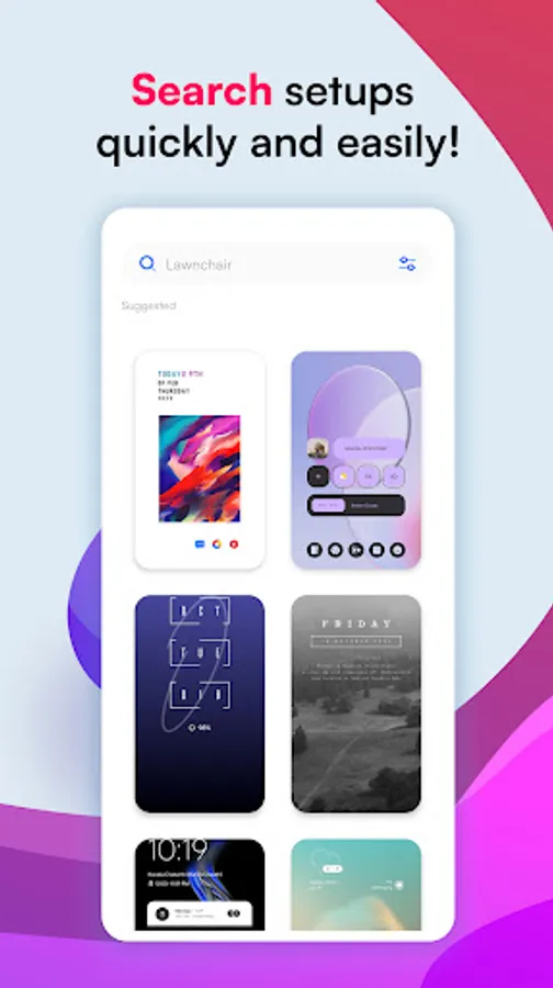 If you're looking for inspiration for an amazing home screen setup, simply swipe through the application, find a setup you love the look of and all of the information you need (i.e. icon packs, widgets, wallpapers etc.) will be available right away.