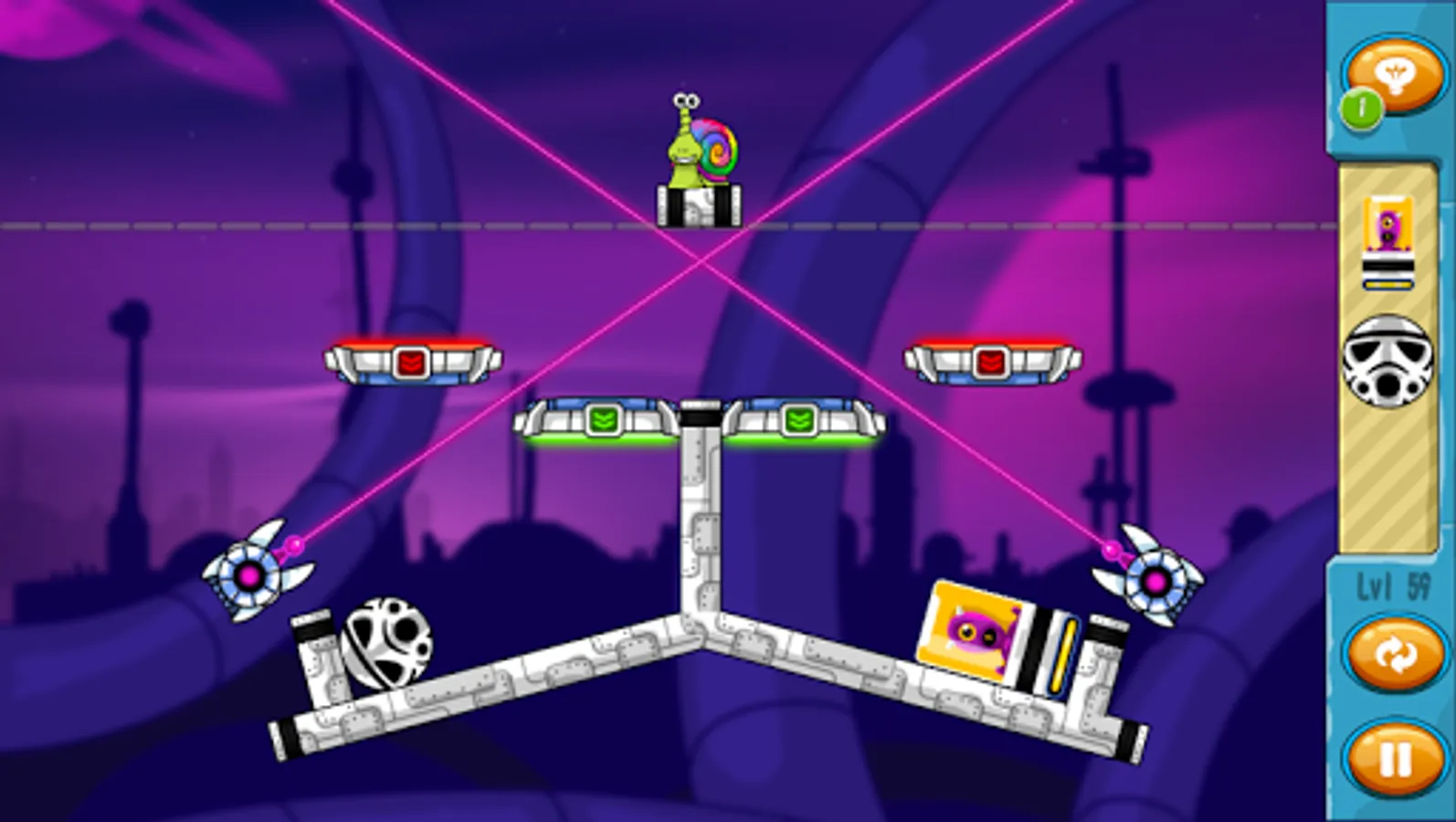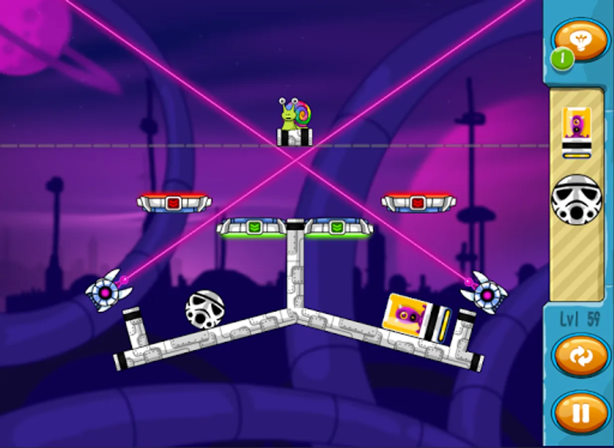 More obstacles mean more options as you can rotate objects and throw them in random order to develop new strategies. You will even use active objects like magnets and ventilators while avoiding or utilizing different surface types like ice or slime.