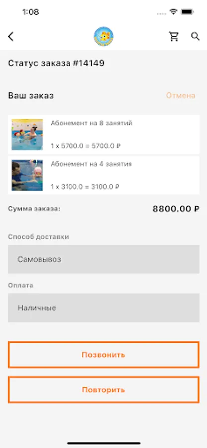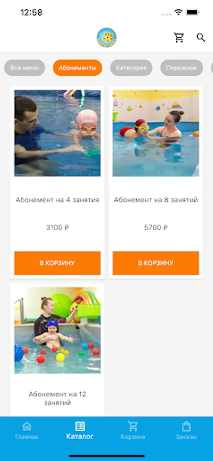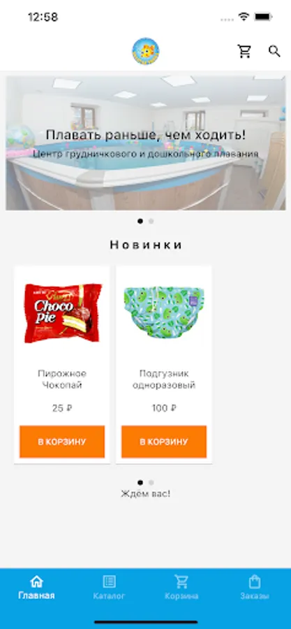 Center for infants and preschool swimming "Golden Fish". Application with all the goods of the network. Buy memberships, gift certificates, bath sets, etc. using your phone at your convenience.