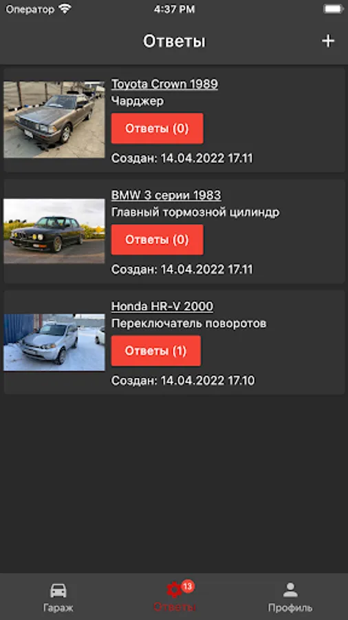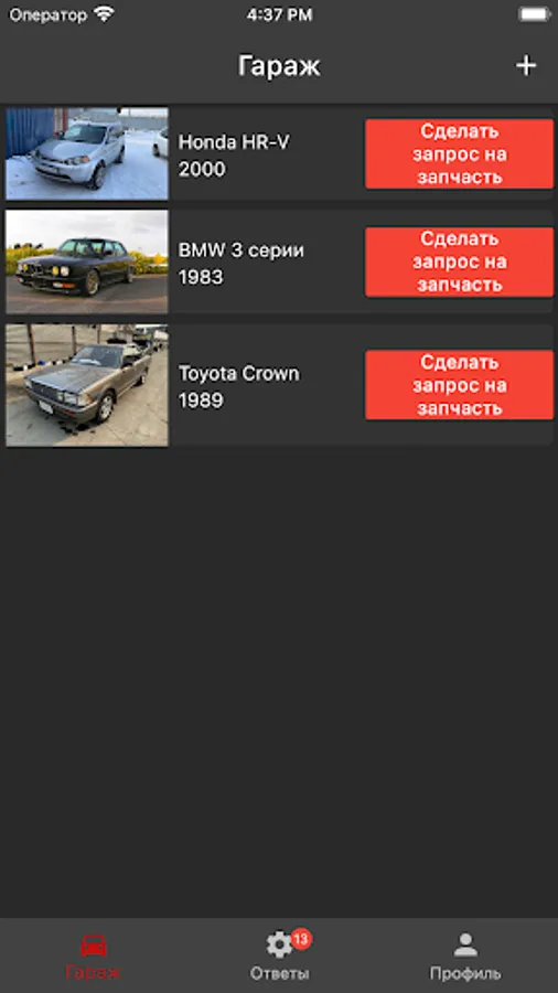 Your application instantly diverges among suppliers - first in your region, and then, if the required spare part is not available, then in other regions of Russia. Within a short time after the mailing, photos of real spare parts with a description and price will come to your phone.