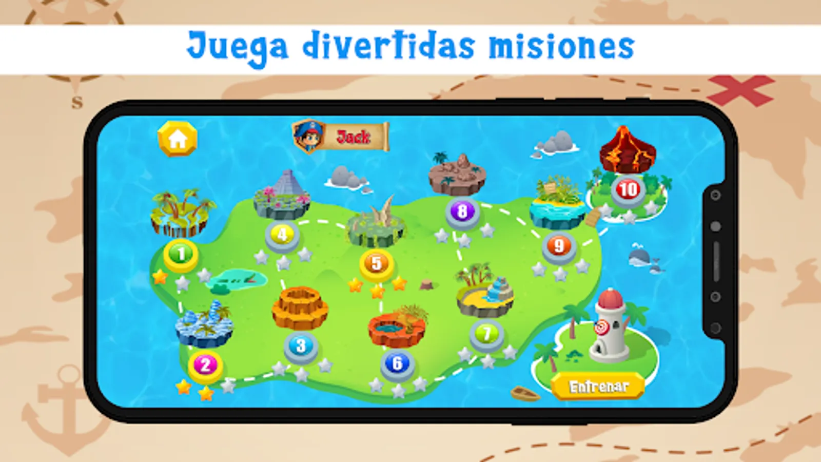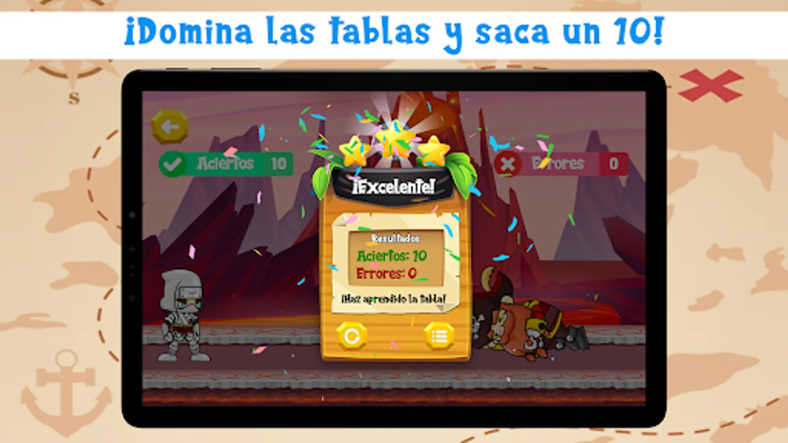 Once the children have learned or reviewed the multiplication tables, they will choose multiplication tables from one to ten from the mission menu, each mission is a very fun interactive game. Random results will appear and only one of the results will be correct, having to identify and select it in order to have a correct answer.