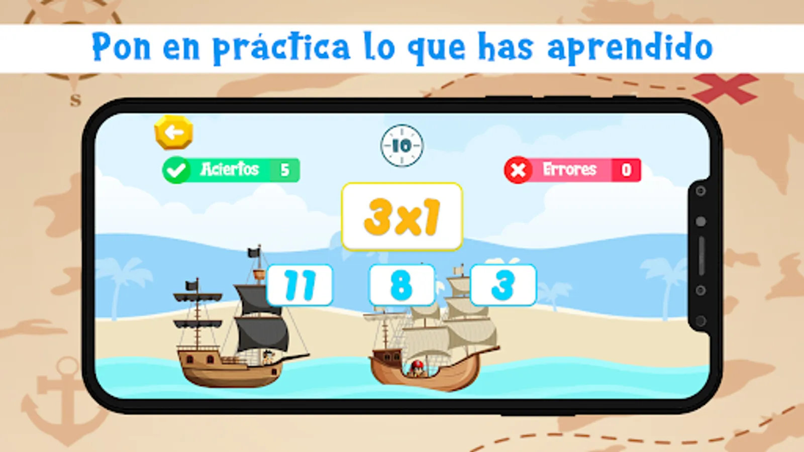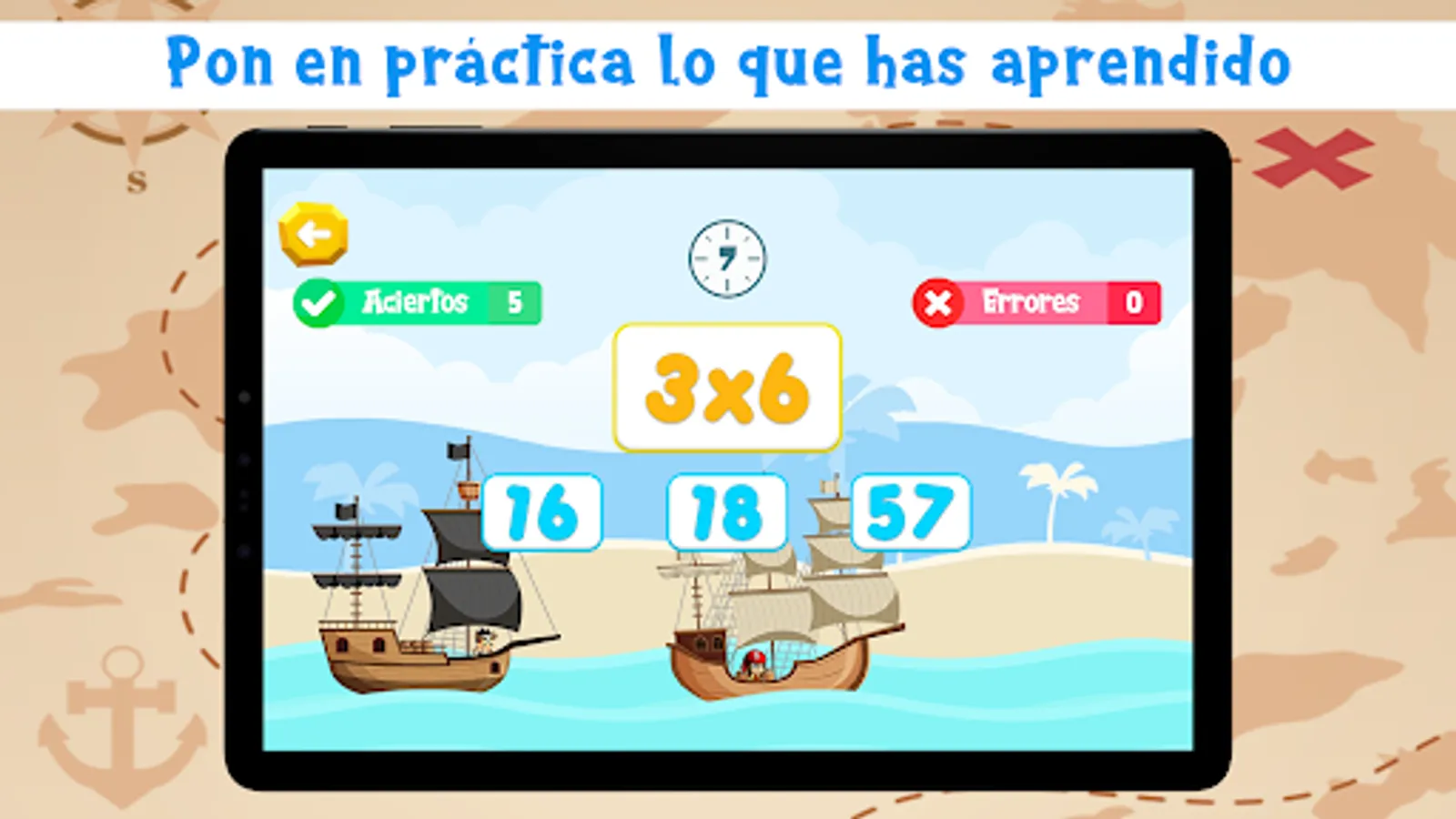 They will begin the adventure through an interactive training in which, by touching each of the values of the multiplication table, an audio will be played with the correct result, helping the easy understanding and learning of multiplications, to later mess up the results and try to remember and place them in their correct position.
