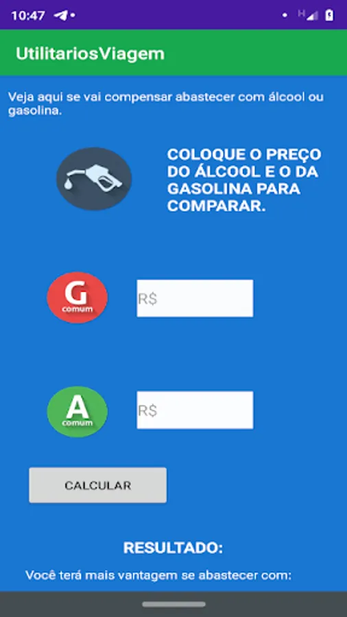- Find out with just a few taps whether it's better to fill your car with alcohol or gasoline.