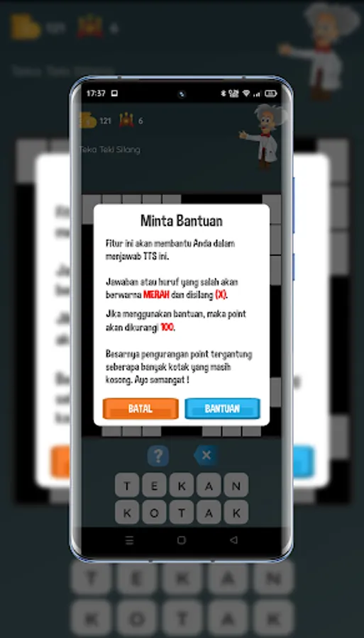 This TTS application is quite simple, all you have to do is press the boxes on the screen and fill in the answers in the boxes according to the questions or clues/grids/hints available at the top of the screen.