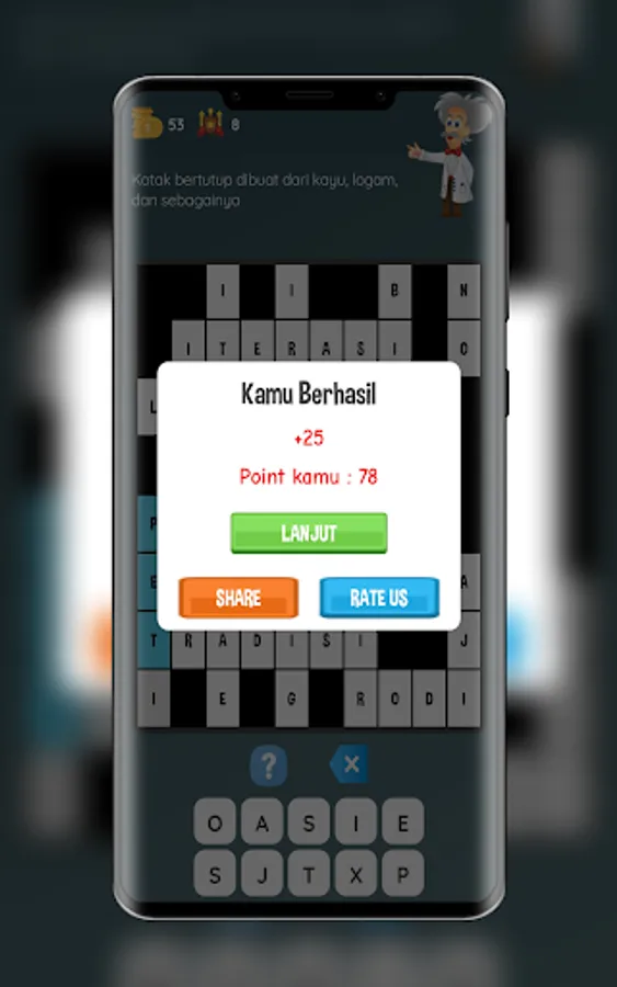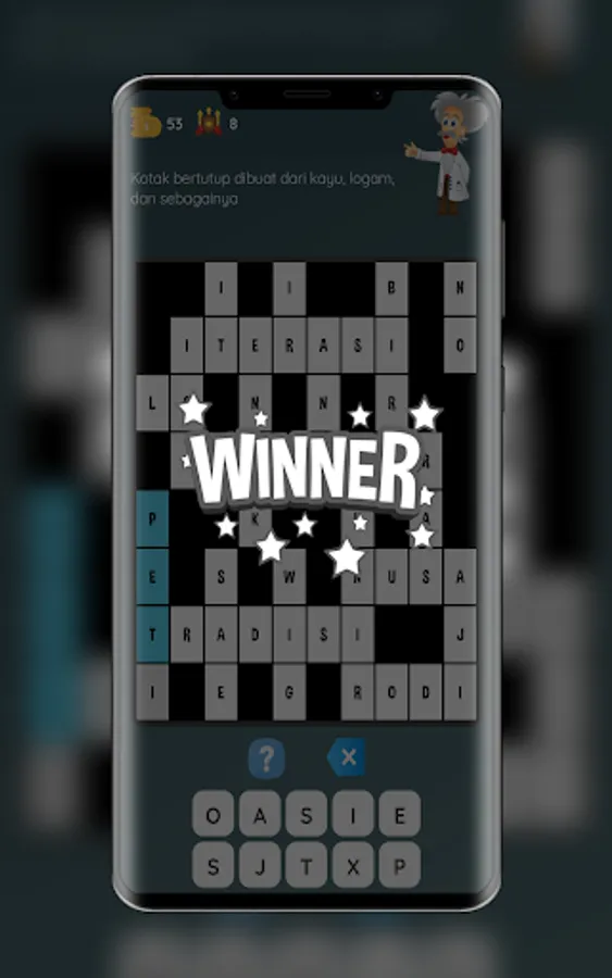 - Then click the horizontal or descending box, a hint sentence will appear at the top and the box can be filled with the letters available at the bottom of the crossword application