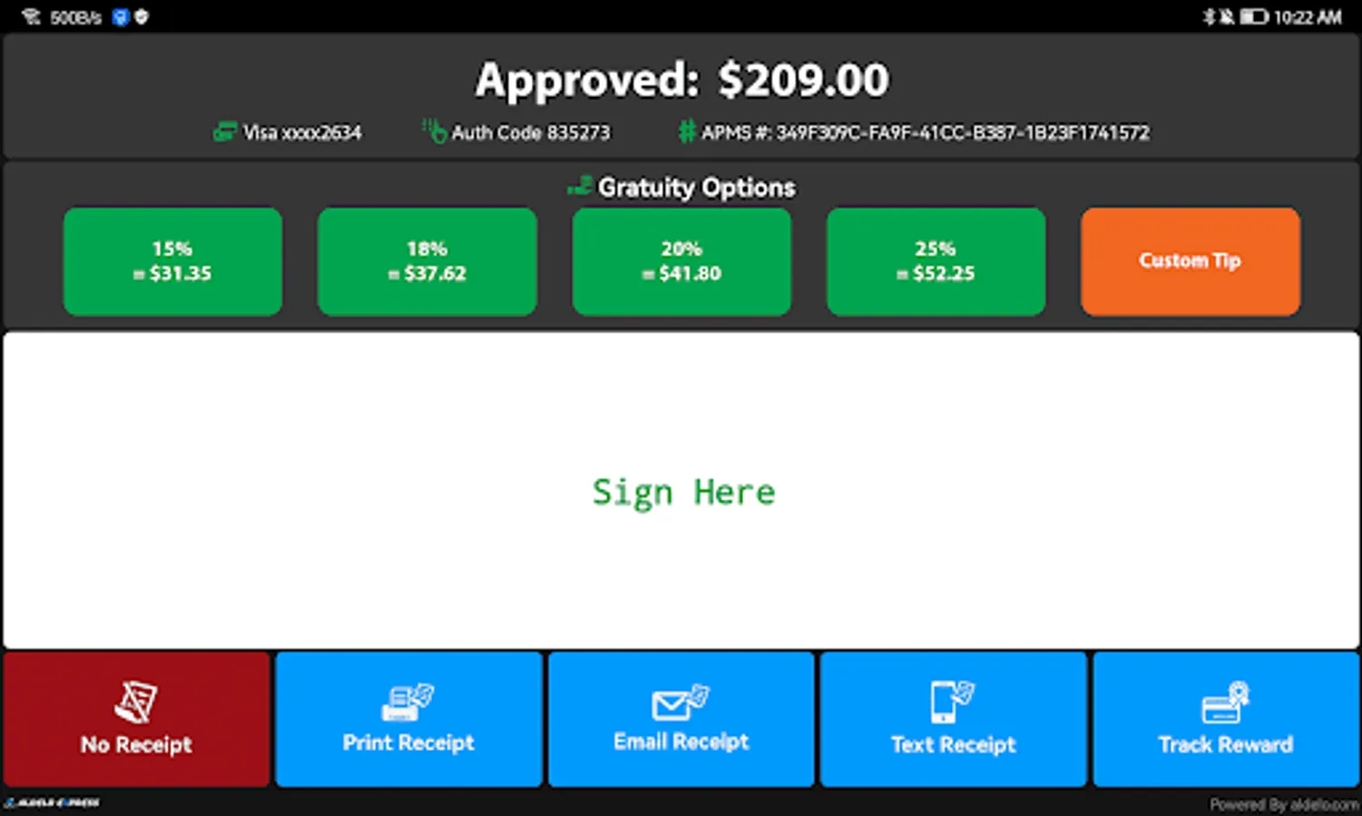 - Easily increase credit card tip collection via On-Device tip prompts during checkout, and easily increase efficiency via On-Device signature capture, as well as email and text of receipts.