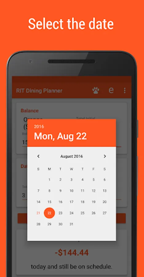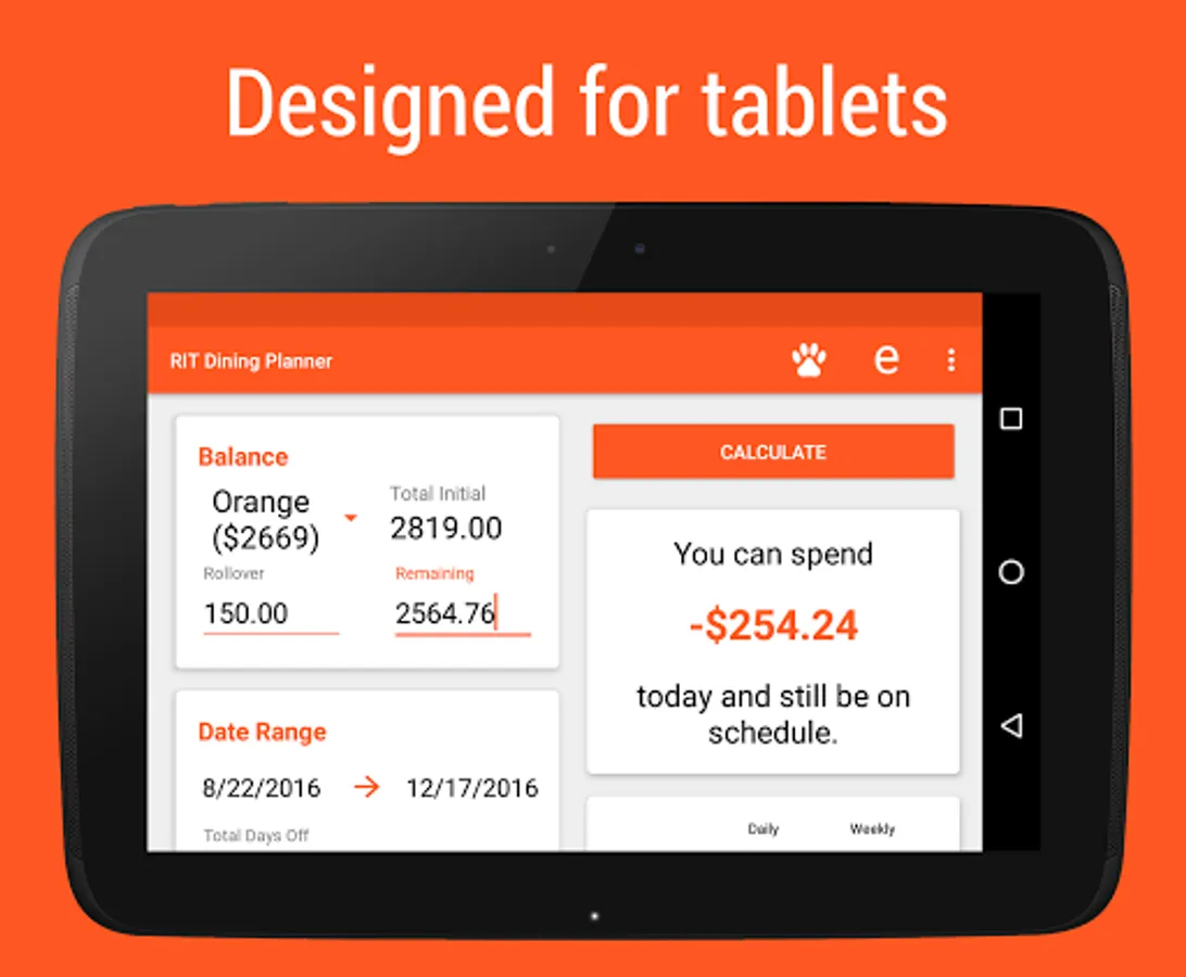 The app calculates how much you could spend daily and weekly at the beginning. It also calculates how far ahead or behind schedule you are and your current daily and weekly limits if you enter the current numbers.