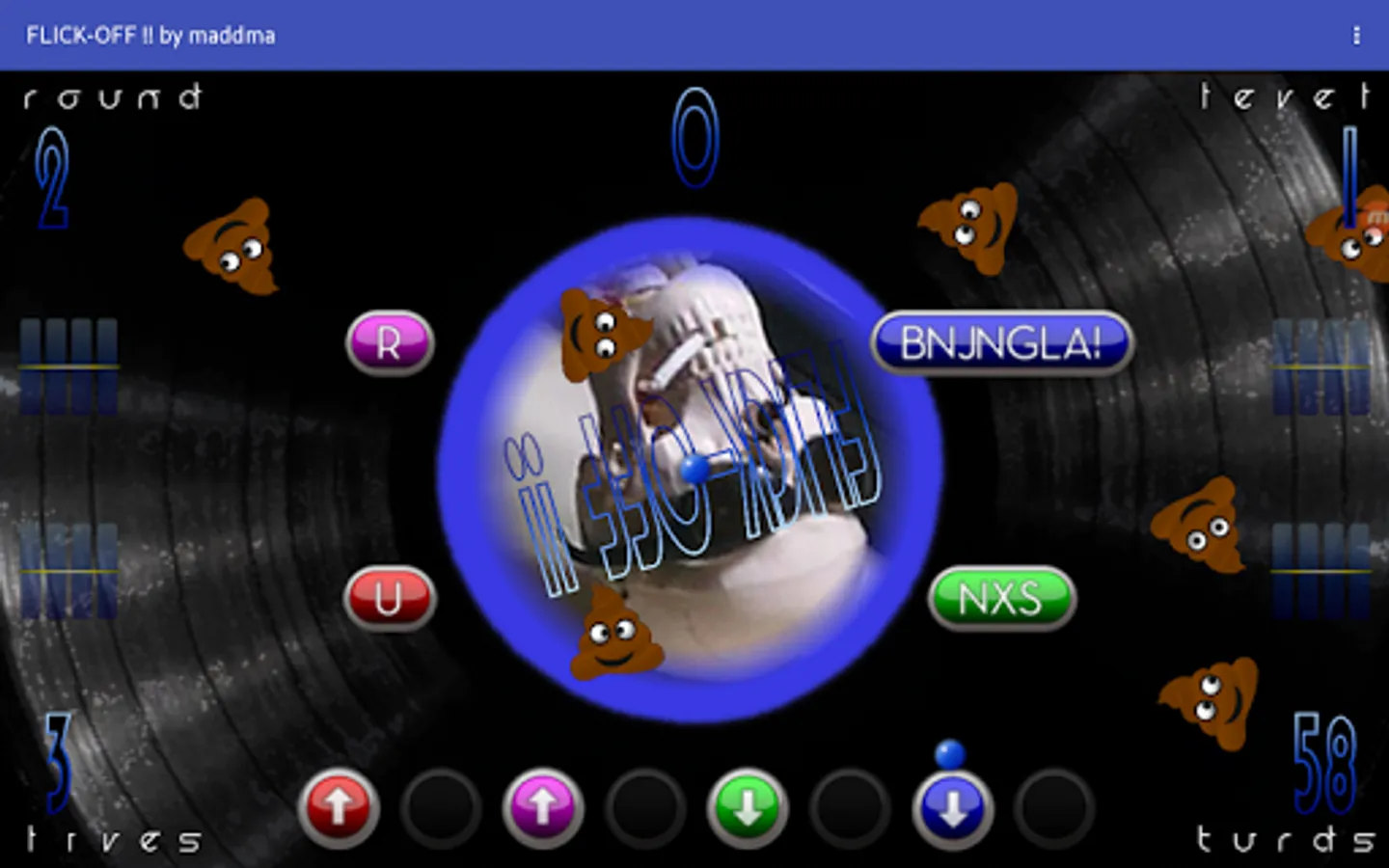 Now with "TURD-TAPPING": tap the turds to flick them outwardly off your vinyl to keep it clean, whilst earning Turds for use in the two-player game! Plus, every Turd is worth Ten Points!