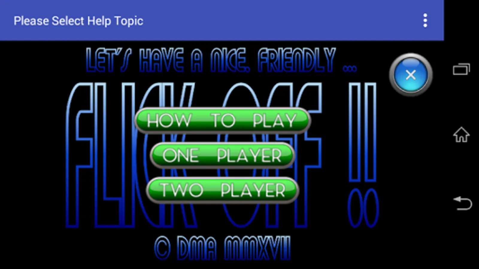 On the title screen, the bottom left button is to add an opponent from the devices detected via Bluetooth, while the top left button starts the game. If no opponent is selected, this will start a one player game, else a two player if there is an opponent. The bottom right button is for accessing the help info.