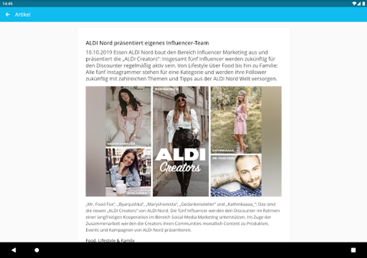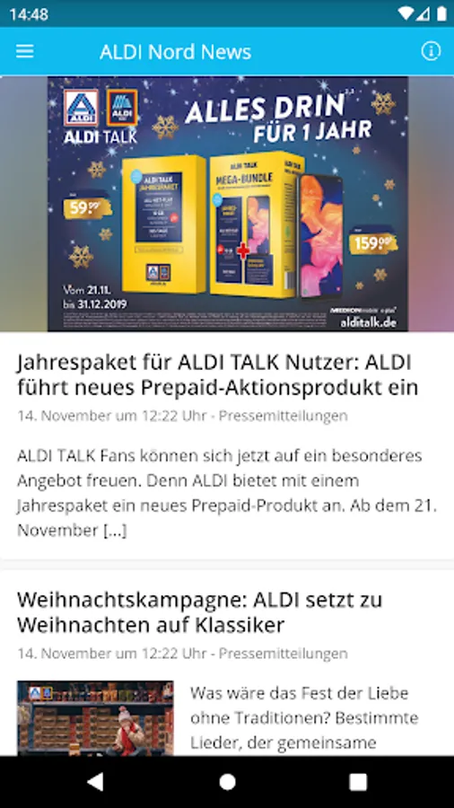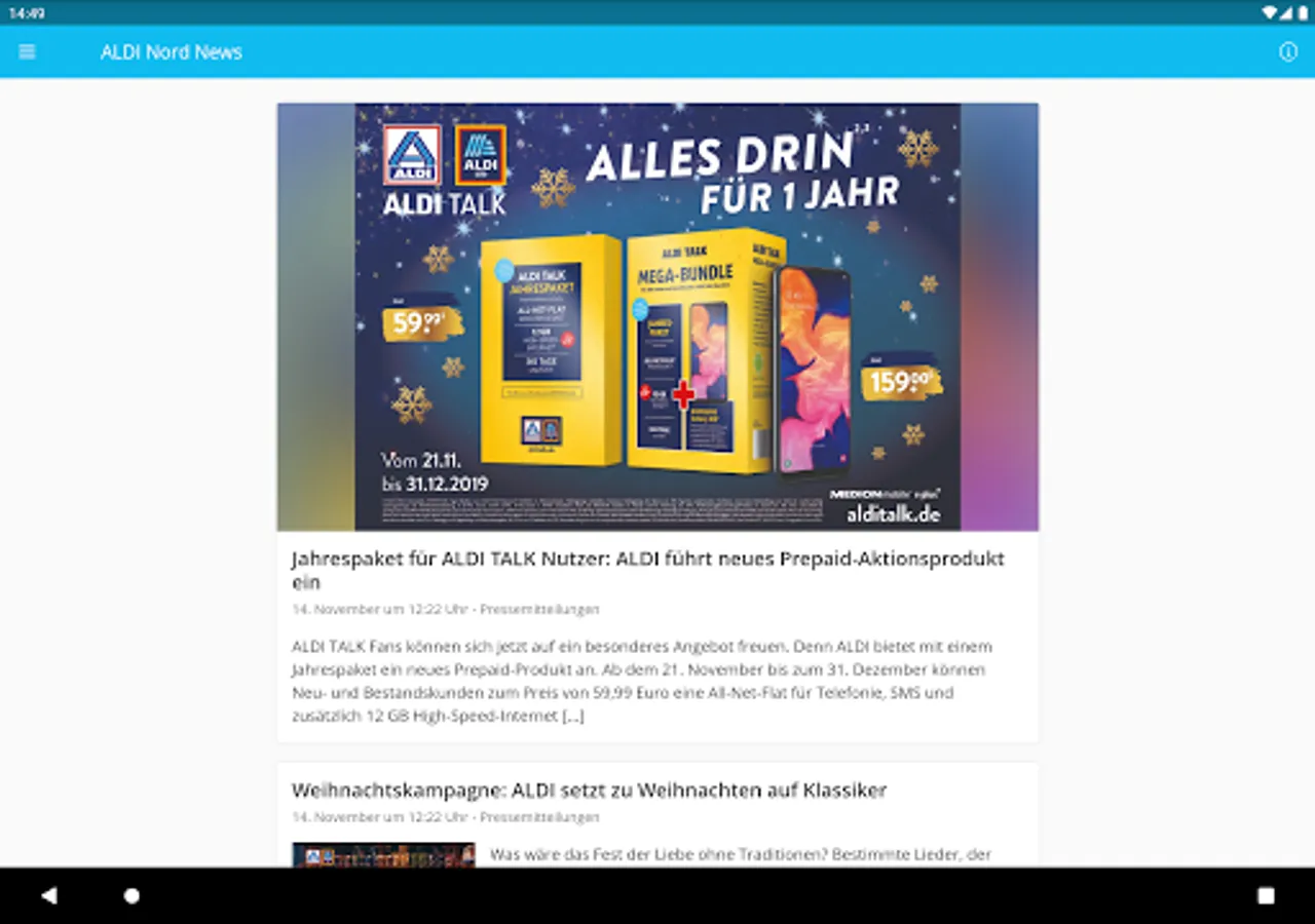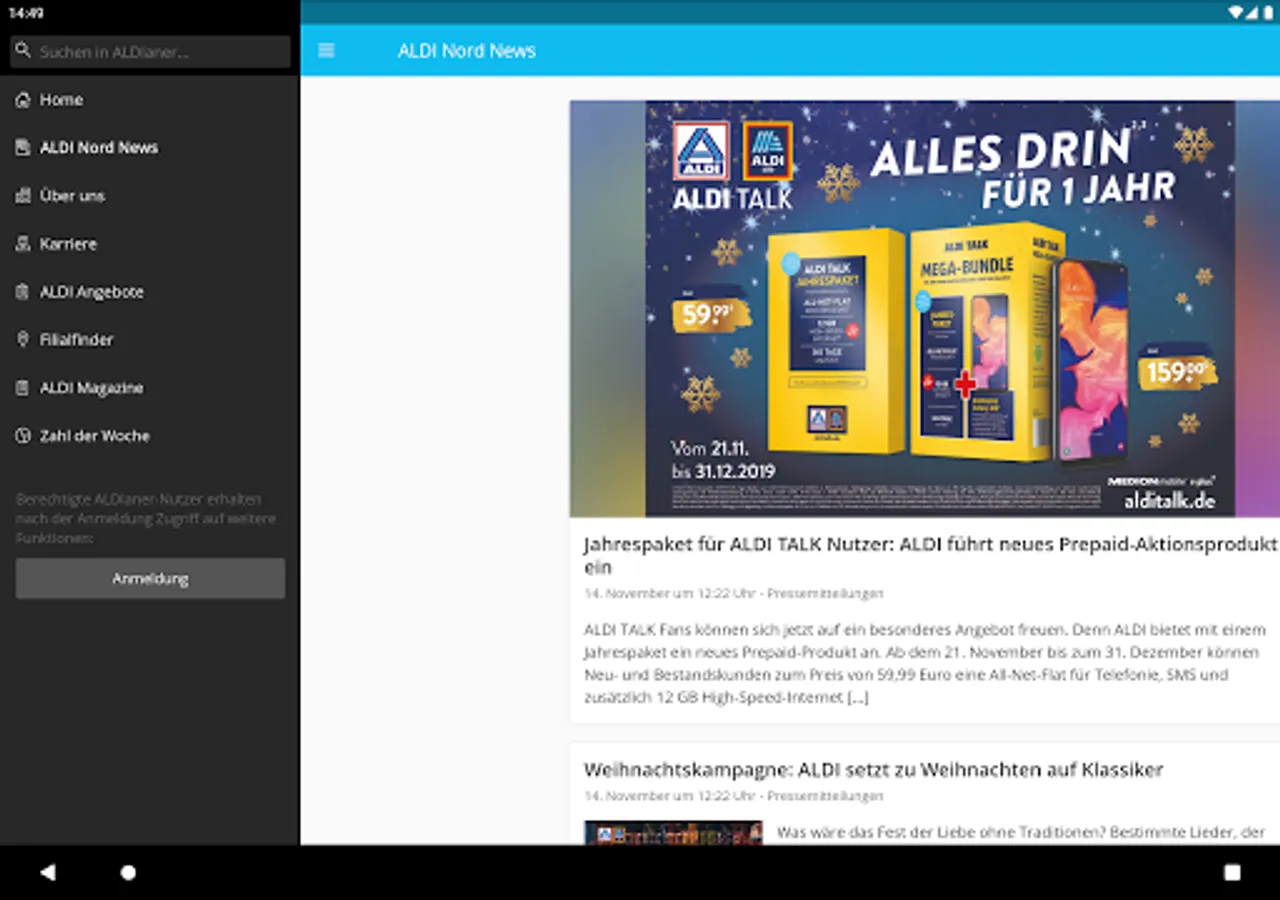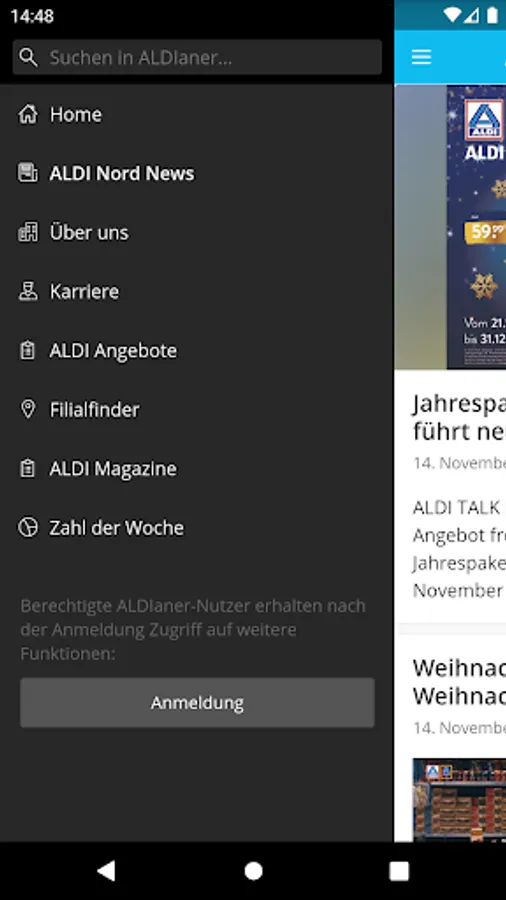 In our ALDIaner app you will find information about the ALDI Nord group of companies - from current news and press releases to exciting facts from the history of the group to insights into the world of work at ALDI Nord.
