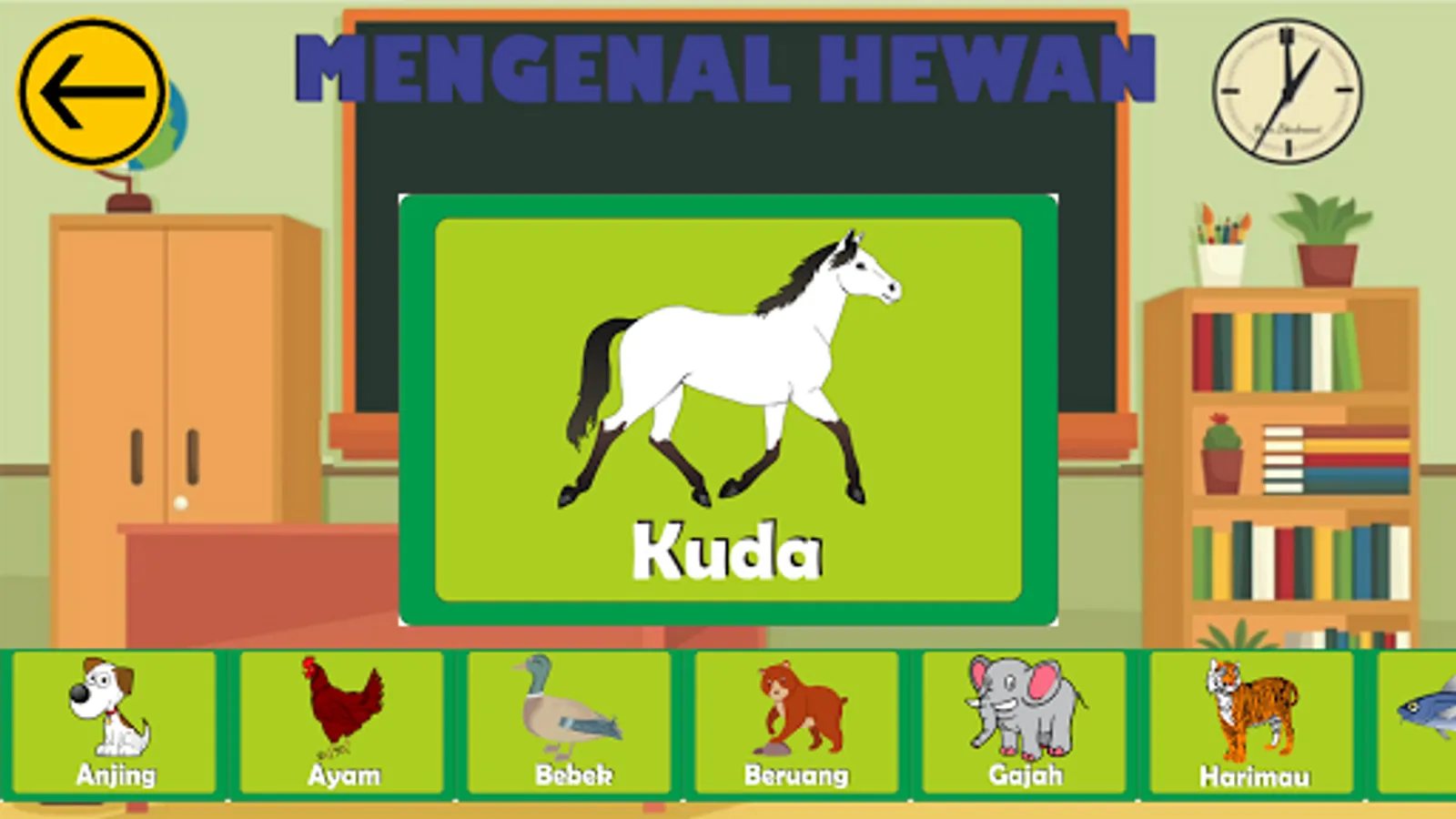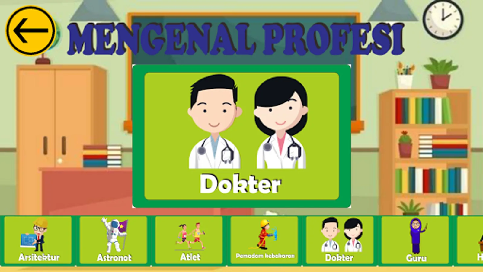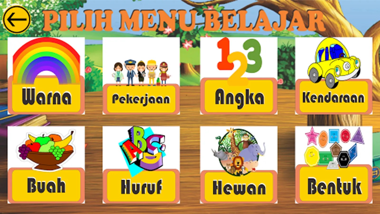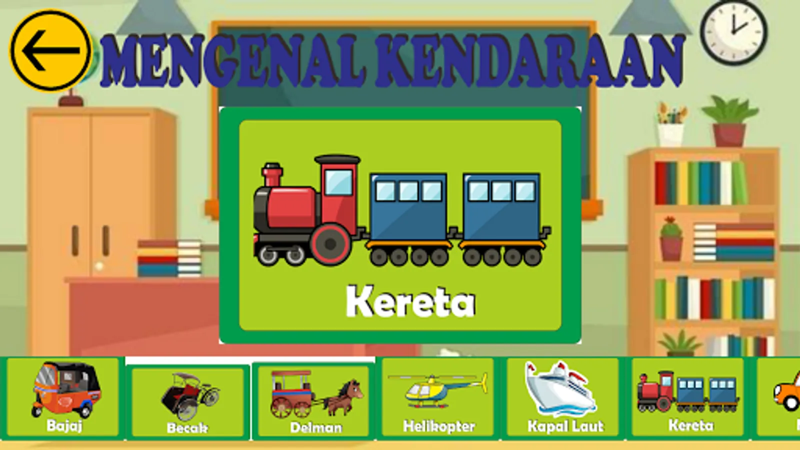 This application contains names of letters, animals, numbers, colors, fruits, shapes, professions, and vehicles for early childhood. With a more colorful display and attractively packaged so that children can enjoy the learning process while playing in this application.