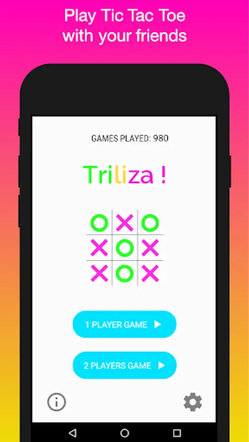 Triliza is a game for two players, who take turns marking the spaces in a 3×3 grid. The player who succeeded in placing three respective marks in a horizontal, vertical, or diagonal row wins the game.